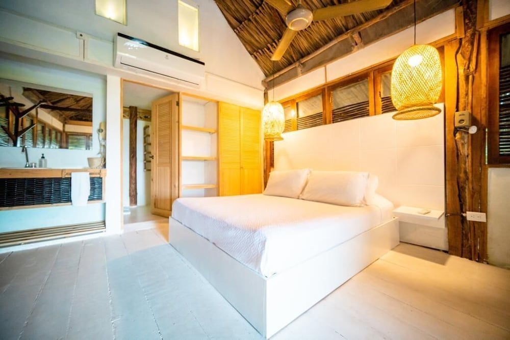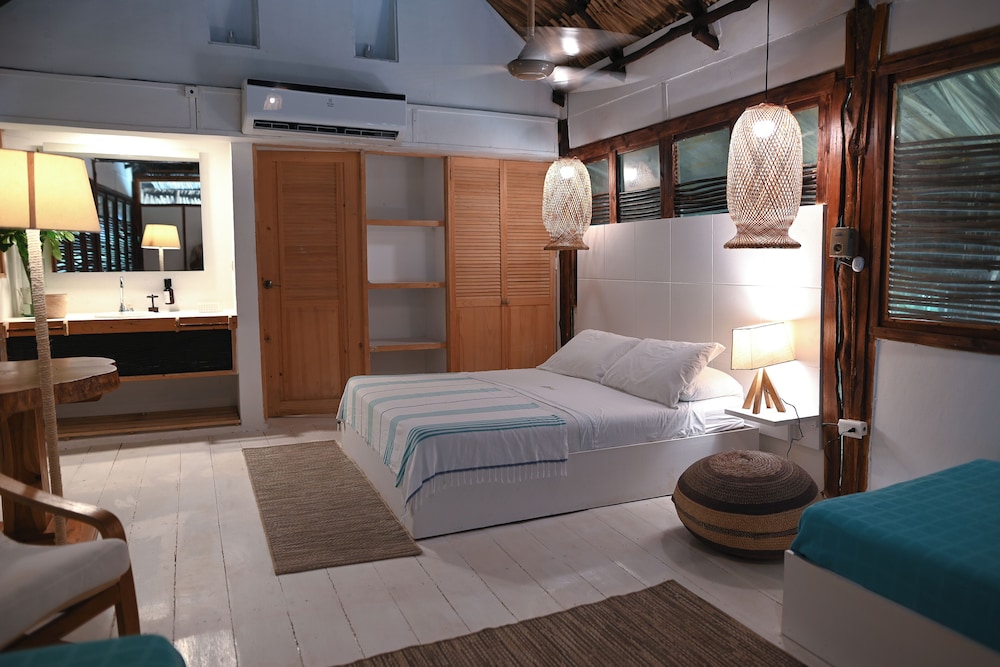 Our first time in Columbia was an amazing experience. We were guests at this resort toward the end of stay and the Owners went out of their way to personally pick us up in their boat from the secluded island we were staying at beforehand. From the moment we met Fernando, our host, we felt and a warm and friendly welcoming. He let us choose our own room and went out of his way to make sure he met our special requests for little comforts. The rooms DO have air conditioning and the bed was comfortable. The rustic feeling of the palm thatched hut provided protection from the elements while adding to the island experience. The food is chef's choice, which is different but led to some truly amazing meals. The resort is on the bay with a lovely dock but the nearby beach is less touristy and a slice of this beautiful country with awesome sunsets. Bring some peso's to experience the local flare. Snorkeling trip was very cool (and free). Drinks and anything you need here are very reasonable and they don't have the typical corporate mini bar price gouging. If you are looking for luxury you aren't going to find it here but you wont find it on baru. Its not that type of experience. Come here for a true Colombian experience with a chance to disconnect and relax. I promise you will never forget your stay at this resort and your visit to Baru. Fernando is a really great guy and even presented us with a thoughtful wonderful parting gift that we will treasure.