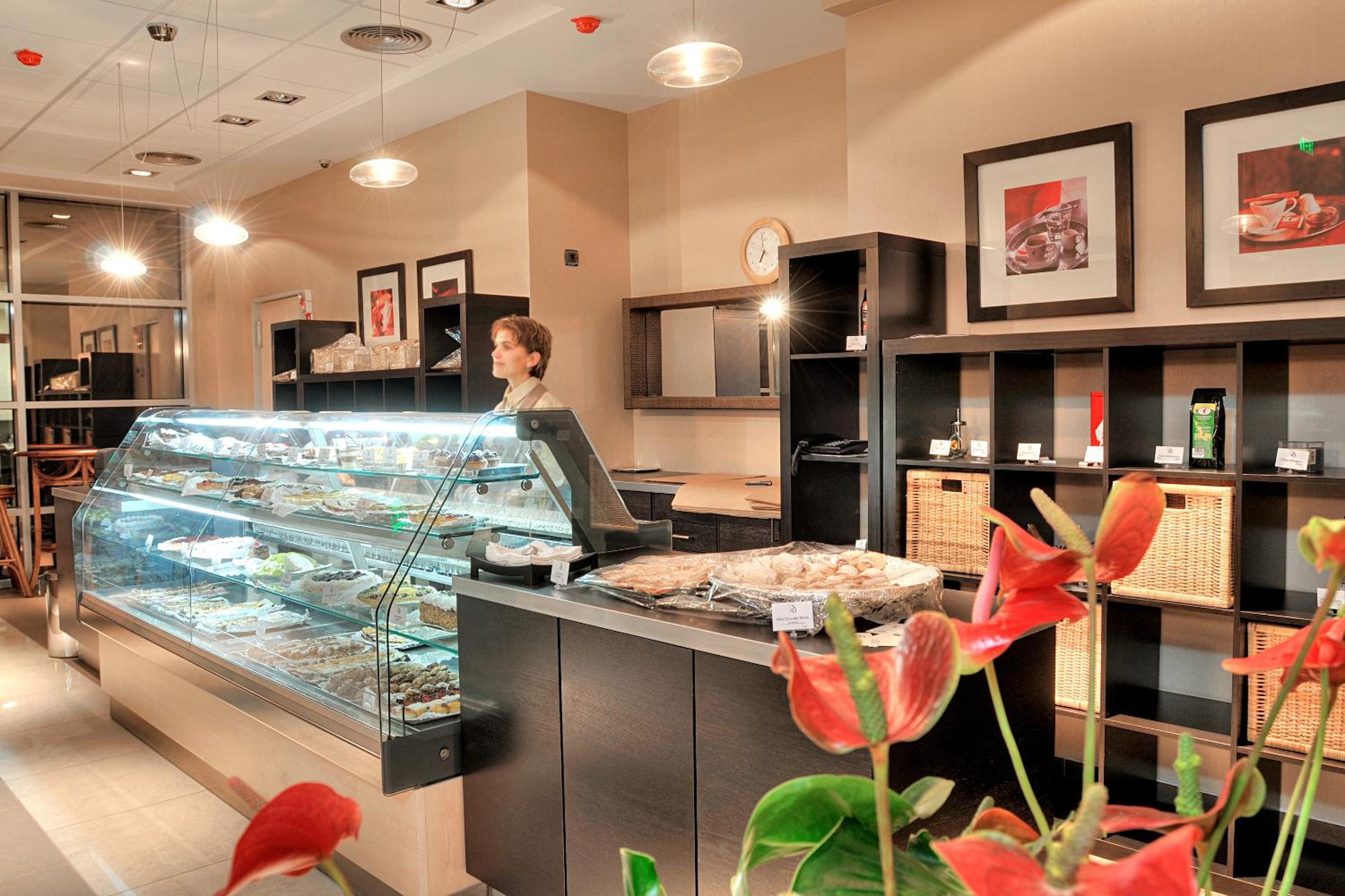 Guests can enjoy a buffet breakfast with cold and warm dishes in the self-service restaurant. A variety of drinks, sandwiches, pastries, and salads are available throughout the day in the café. Lunch options are also offered in the restaurant.