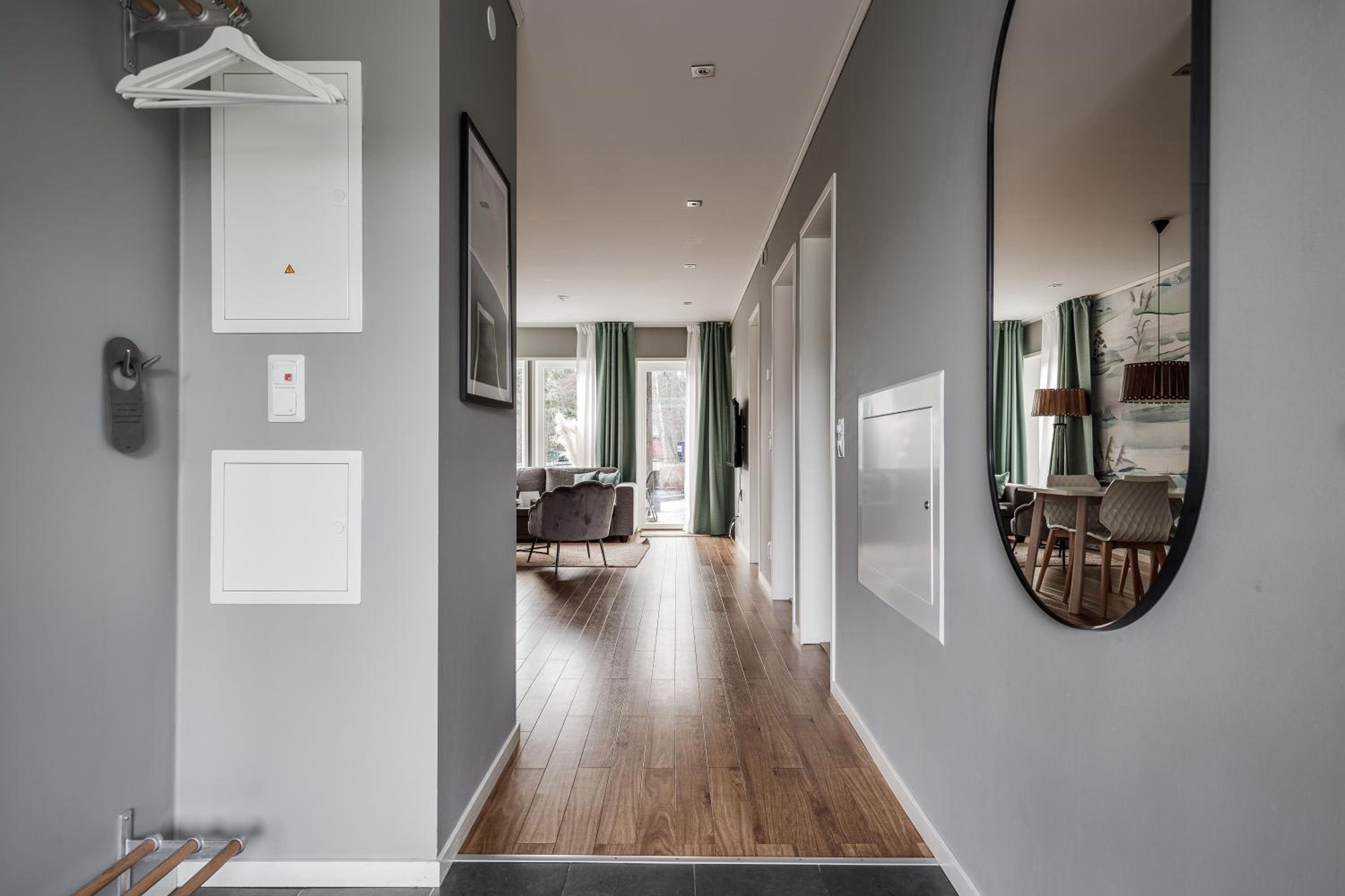 With fully equipped kitchens, dining areas, and cozy sofa spaces with flat-screen TVs, our apartments ensure a comfortable stay. Explore Gävle golf club, the serene garden, and a children's playground nearby.