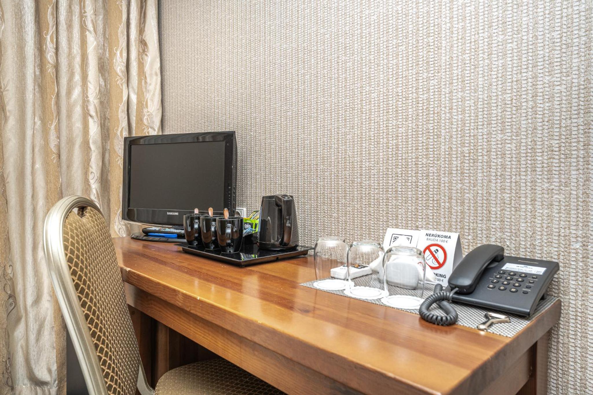 Indulge in traditional Lithuanian and European cuisine at the on-site restaurant, or relax in the 24-hour lobby bar with a cozy fireplace and large TV. Room service is also available for your convenience.