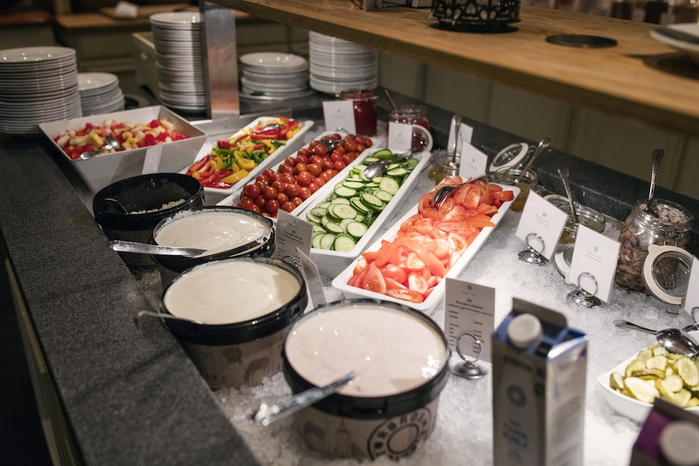Indulge in Scandinavian flavors at Brasseriet, our on-site restaurant, or grab a quick bite at the café. Enjoy room service for a cozy dining experience and don't miss our complimentary buffet breakfast every morning.