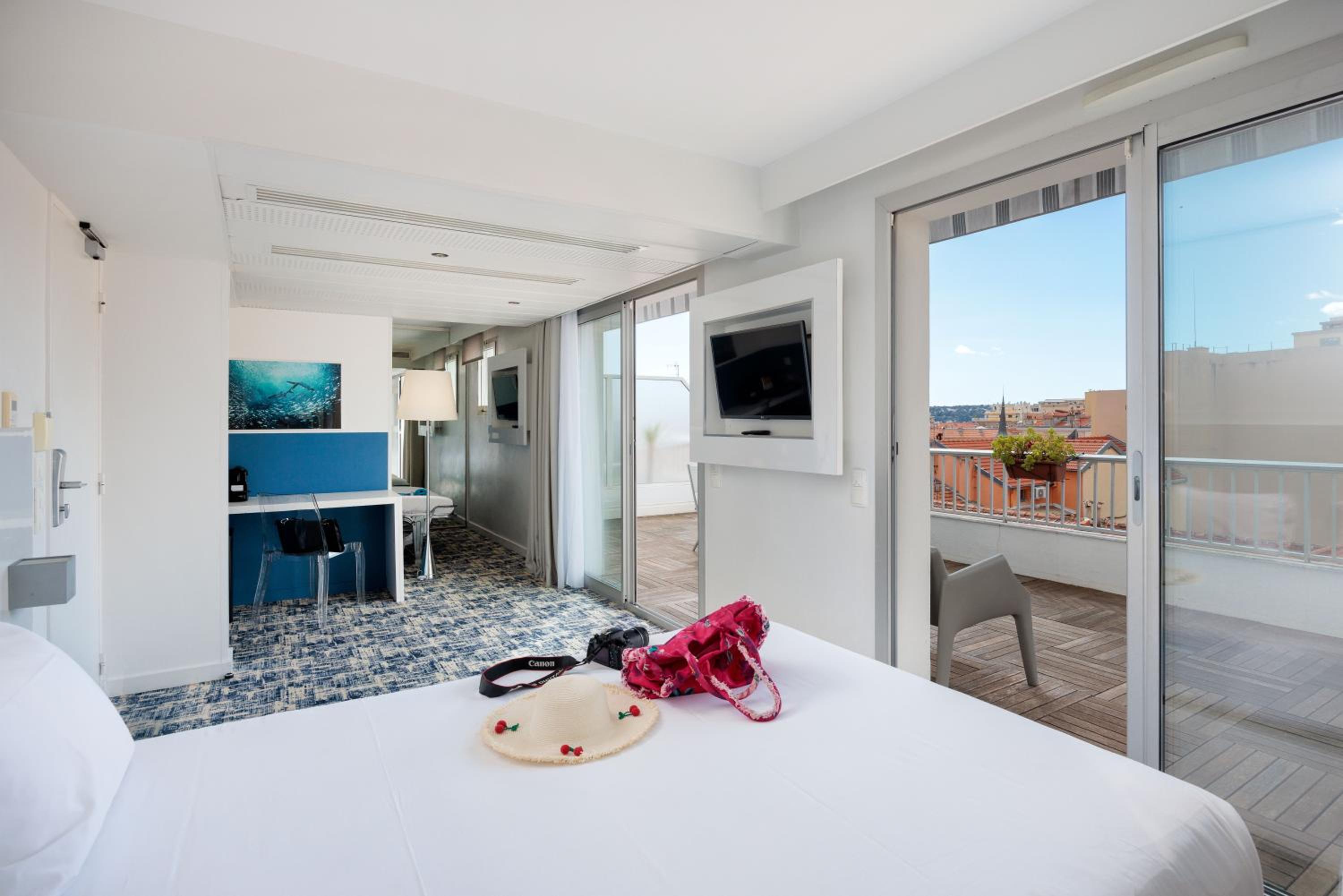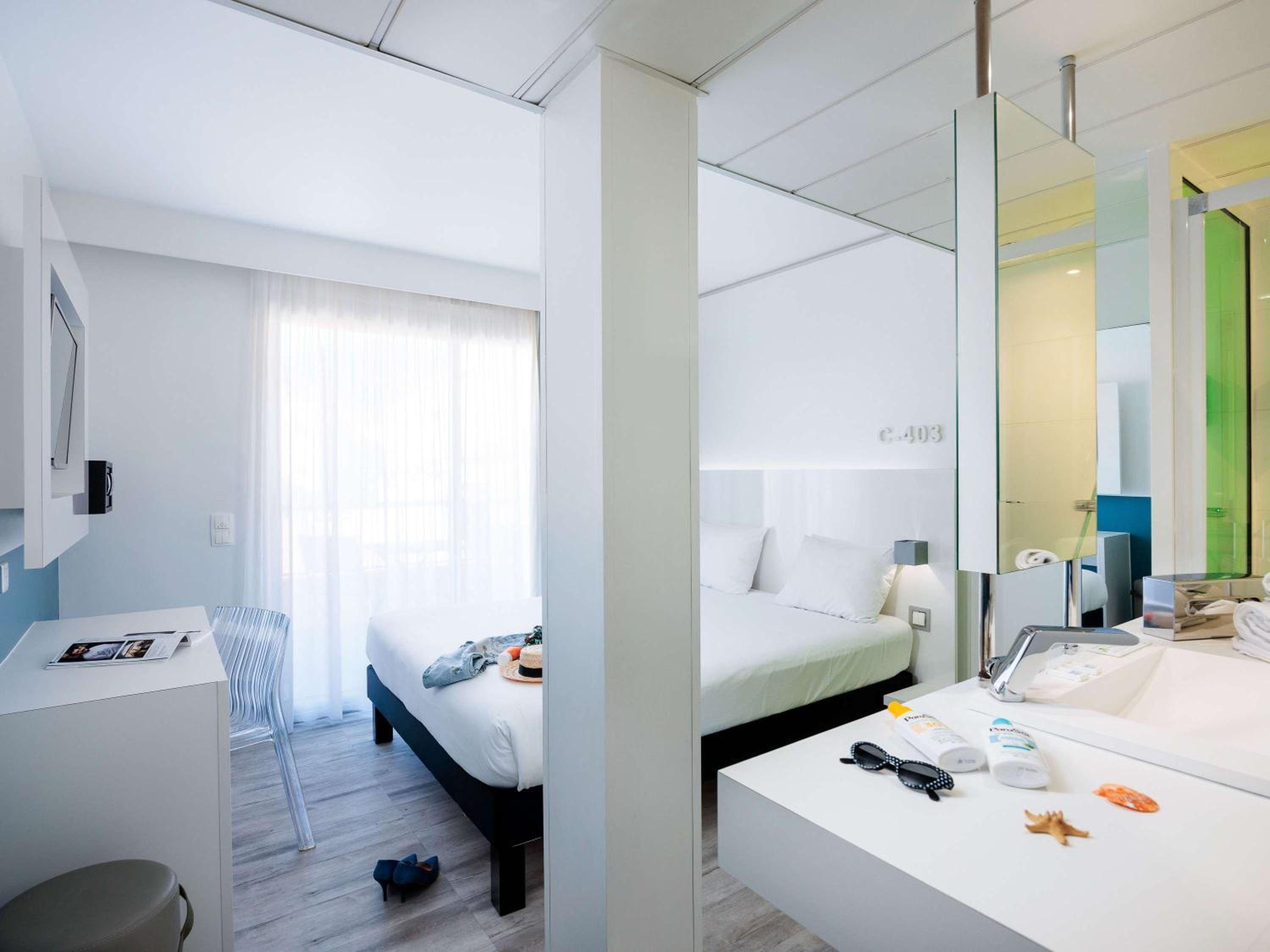 Indulge in the comfort of uniquely decorated guest rooms featuring contemporary designs. Enjoy amenities such as air conditioning, flat-screen TVs, and free WiFi, with some rooms even boasting balconies or terraces for a touch of outdoor relaxation.