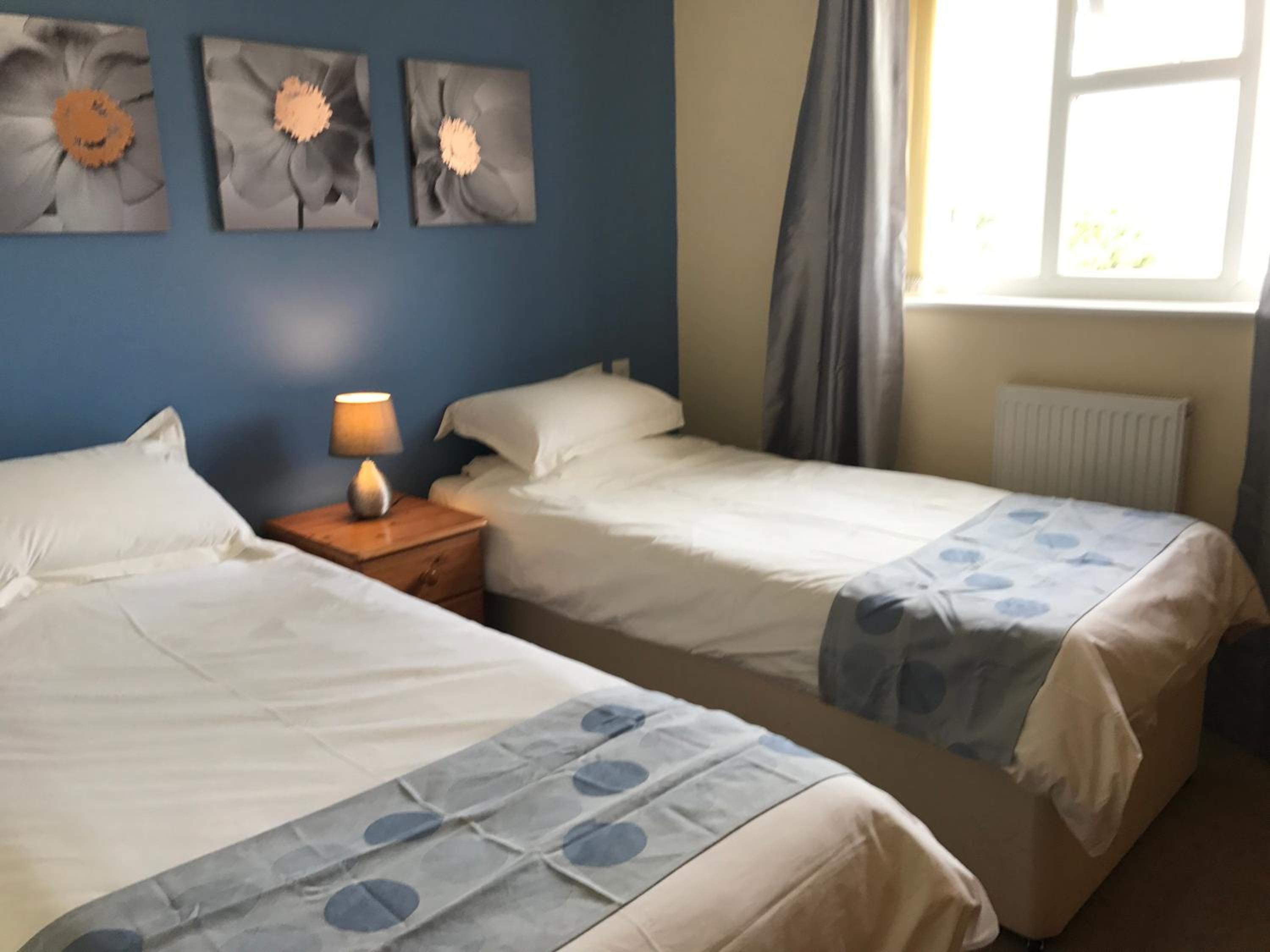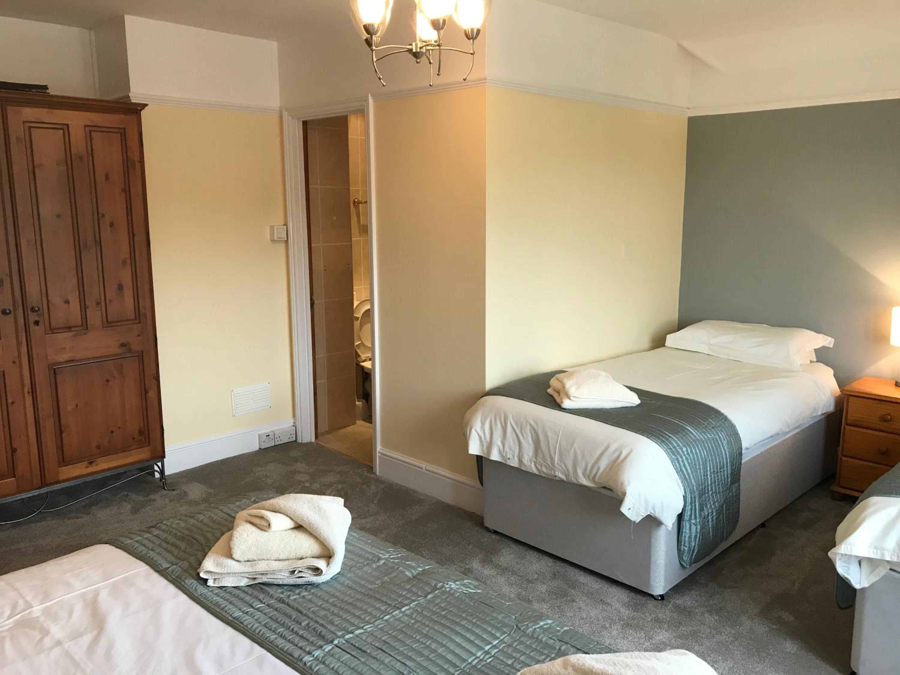 We are three mates that was looking for accommodation within 15 mins drive to Shepton Mallet show ground for the classic bike show, having travelled down over 200 miles. We were greeted at 9pm and although the kitchen had closed, they knocked us a meal up and was spot on. It's a cracking pub and our room was in an annexe and had an upper level with two beds and a double on the ground . It was perfect for the three of us.