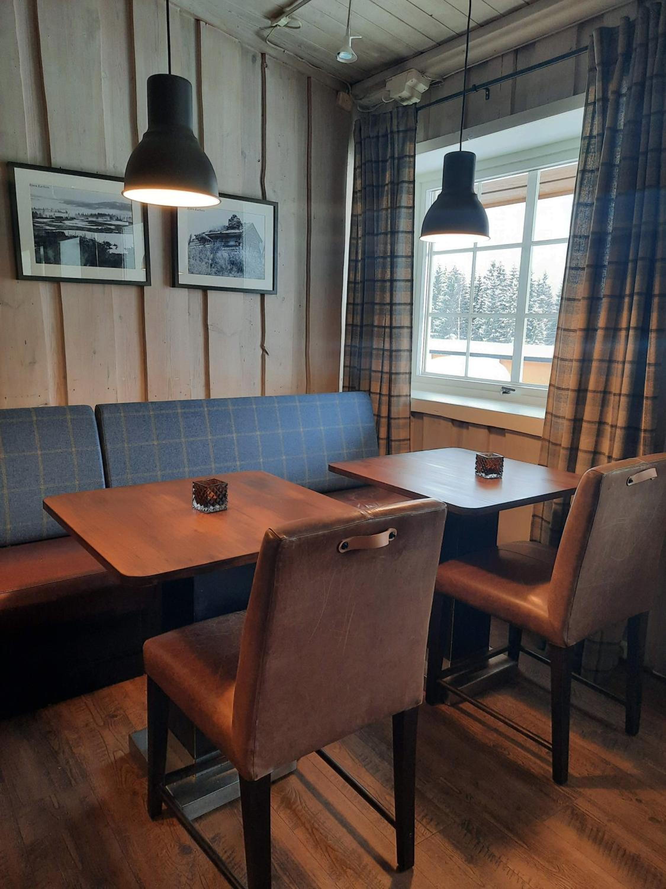 Hyggelig betjening og koselig oppholdsstuer med shuffleboard.