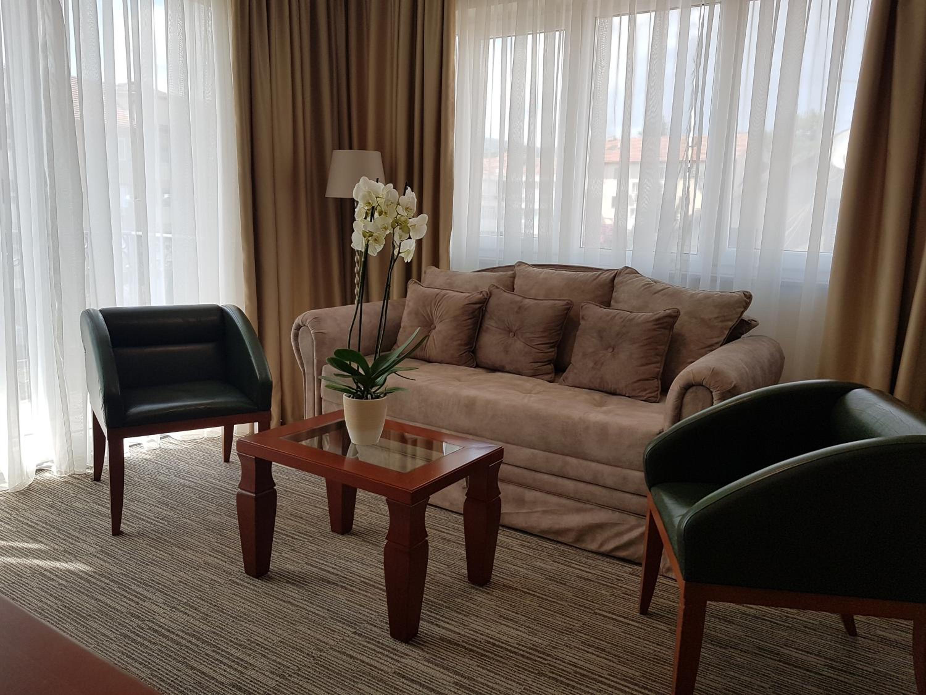Indulge in continental cuisine with a Mediterranean flair and fresh seafood at the hotel's acclaimed restaurant, recipient of the International Fair of Tourism awards.