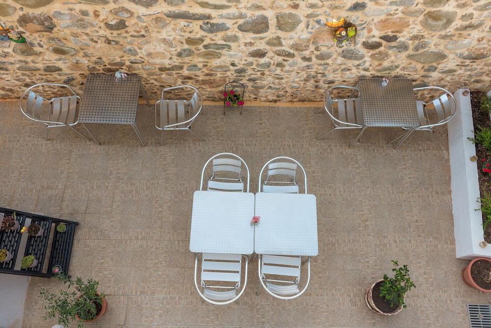 Enjoy the serene atmosphere and stunning views from the terrace and garden at Antigoni.