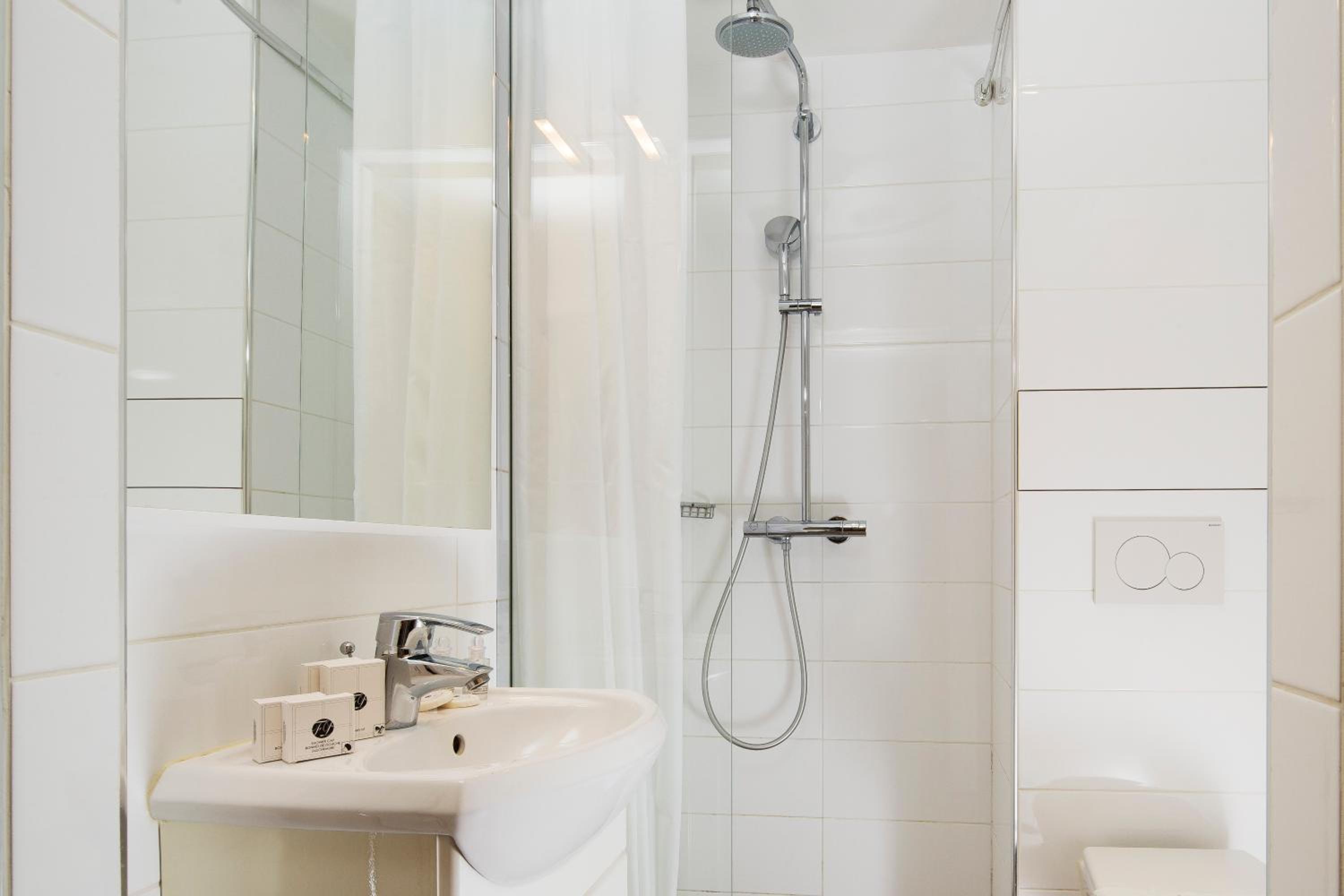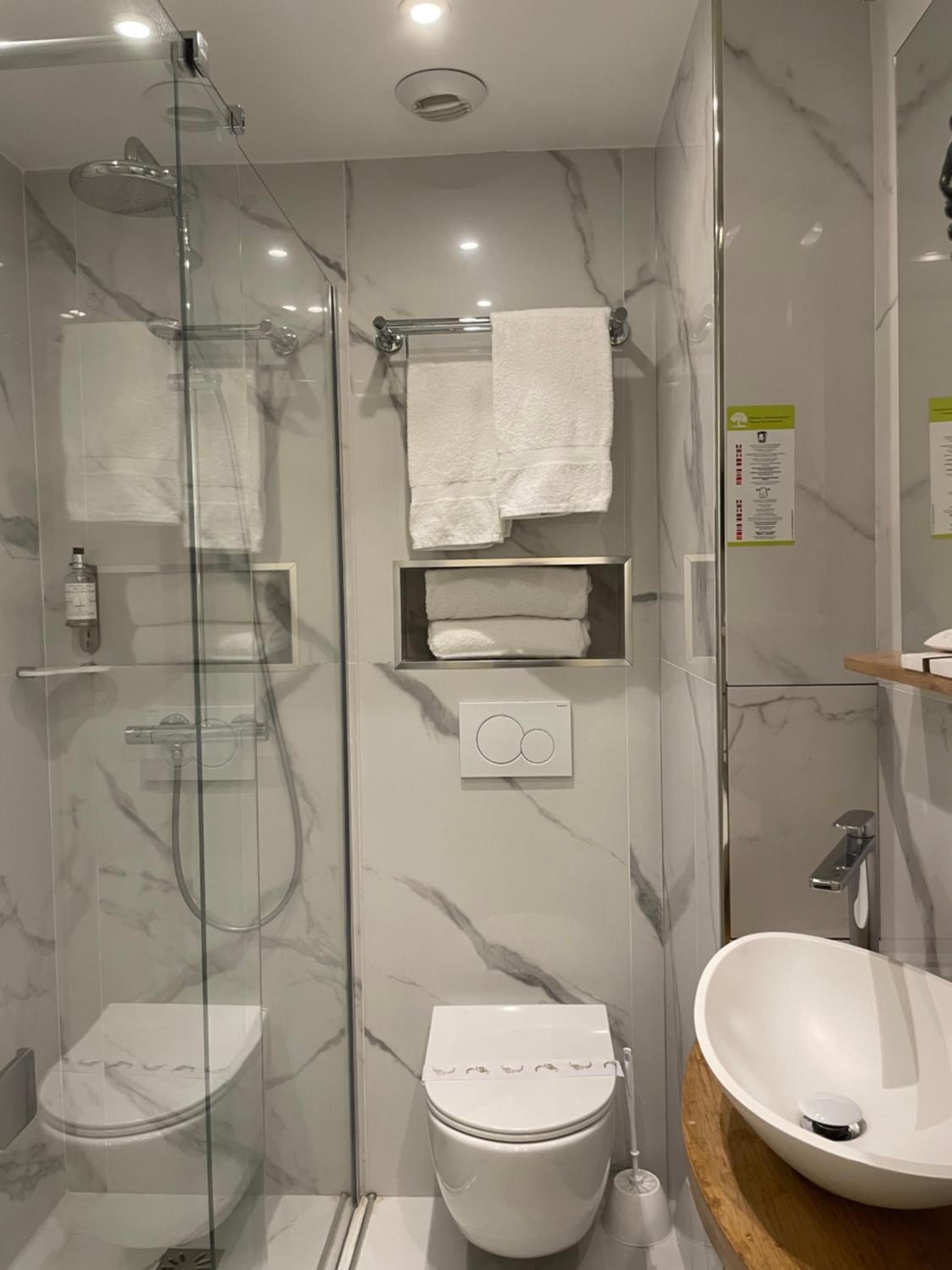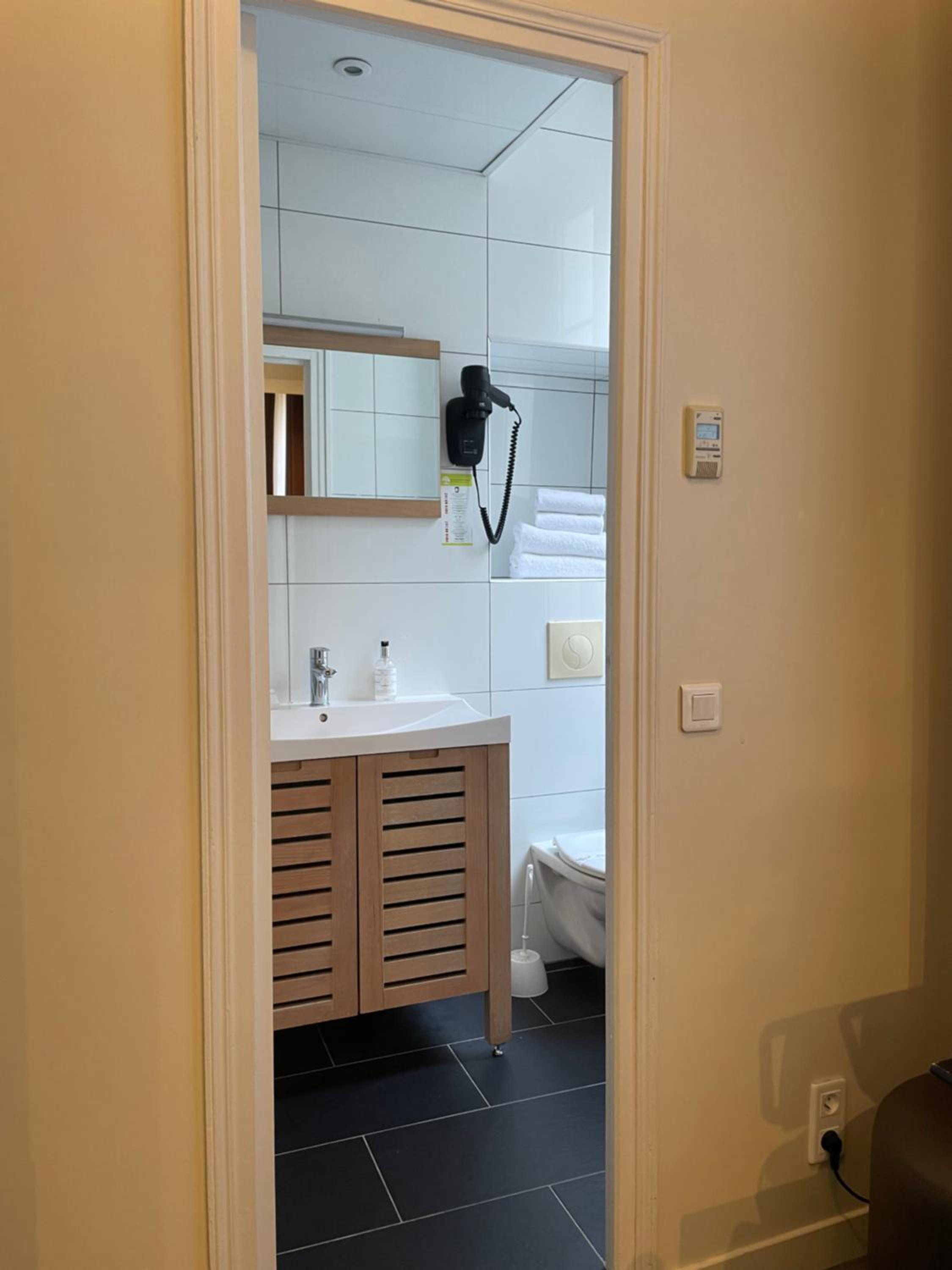 L’air chaude qui est bloqué pour pas rester longtemps sous la douche, la ventilation qui fait du bruit si on monte la température, les 25€ pour pouvoir avoir accès à la chambre 1h avant l’heure de Check in. On est pas dans un 4*