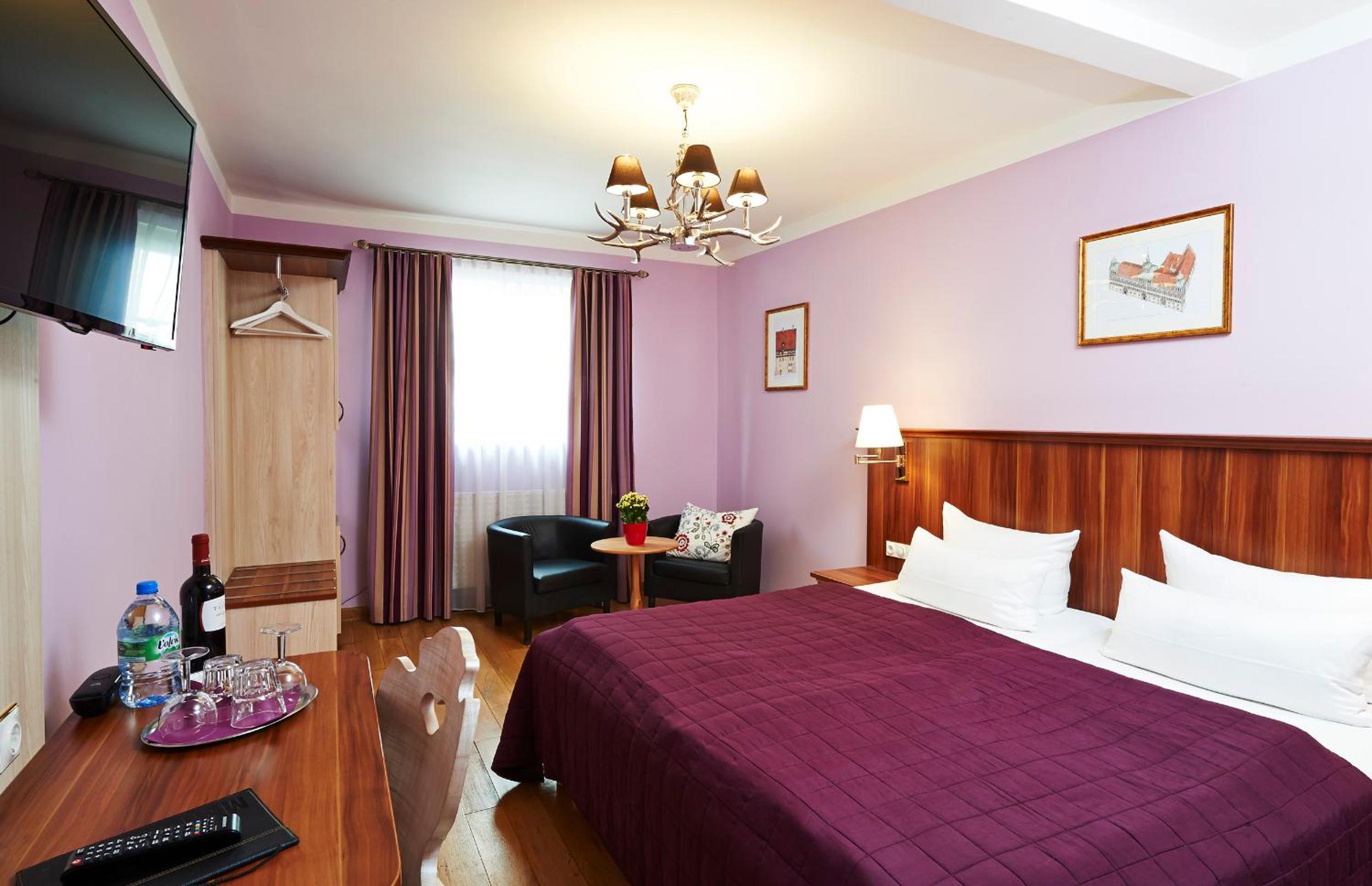 Each room at Hotel Elch boasts a flat-screen TV, minibar, and free WiFi, ensuring guests' comfort and convenience. The fusion of contemporary design with the building's historic elements creates a cozy retreat.