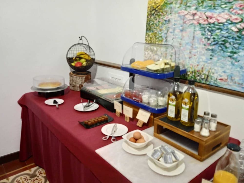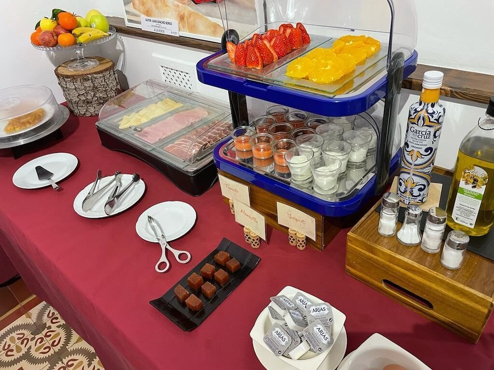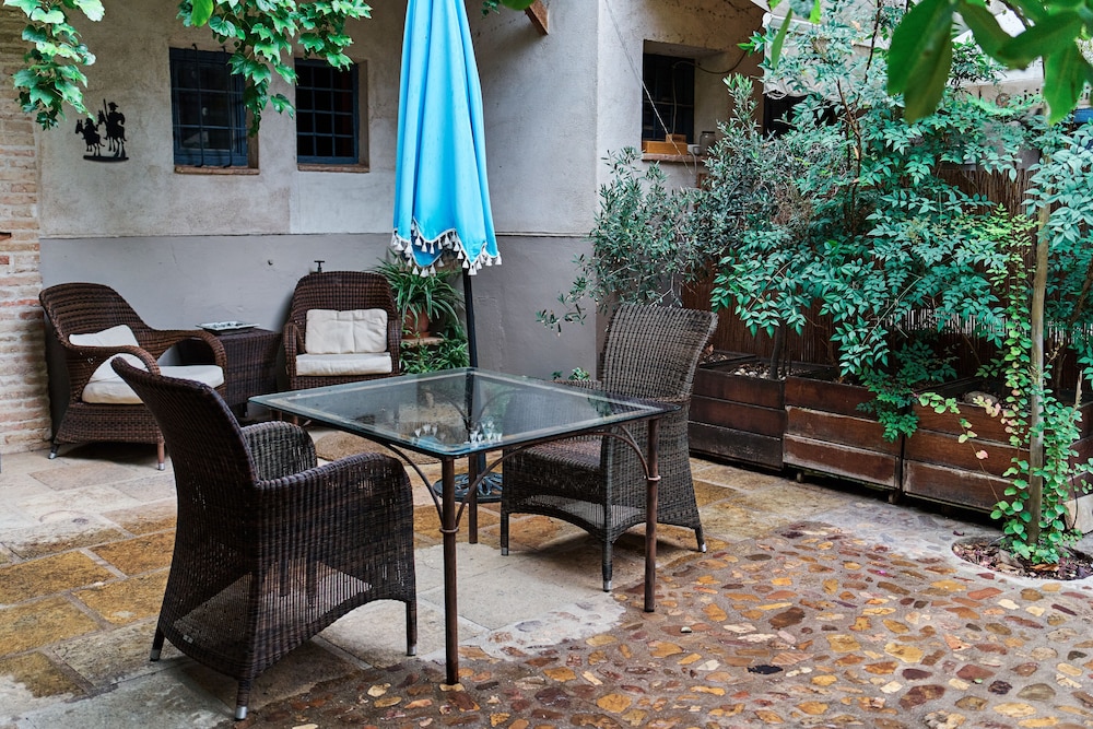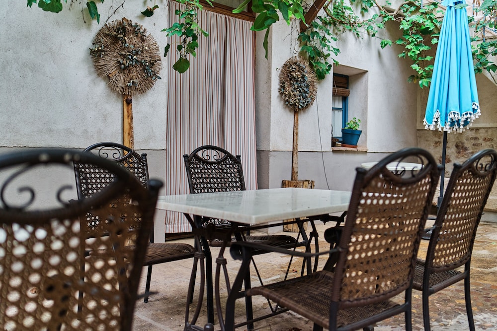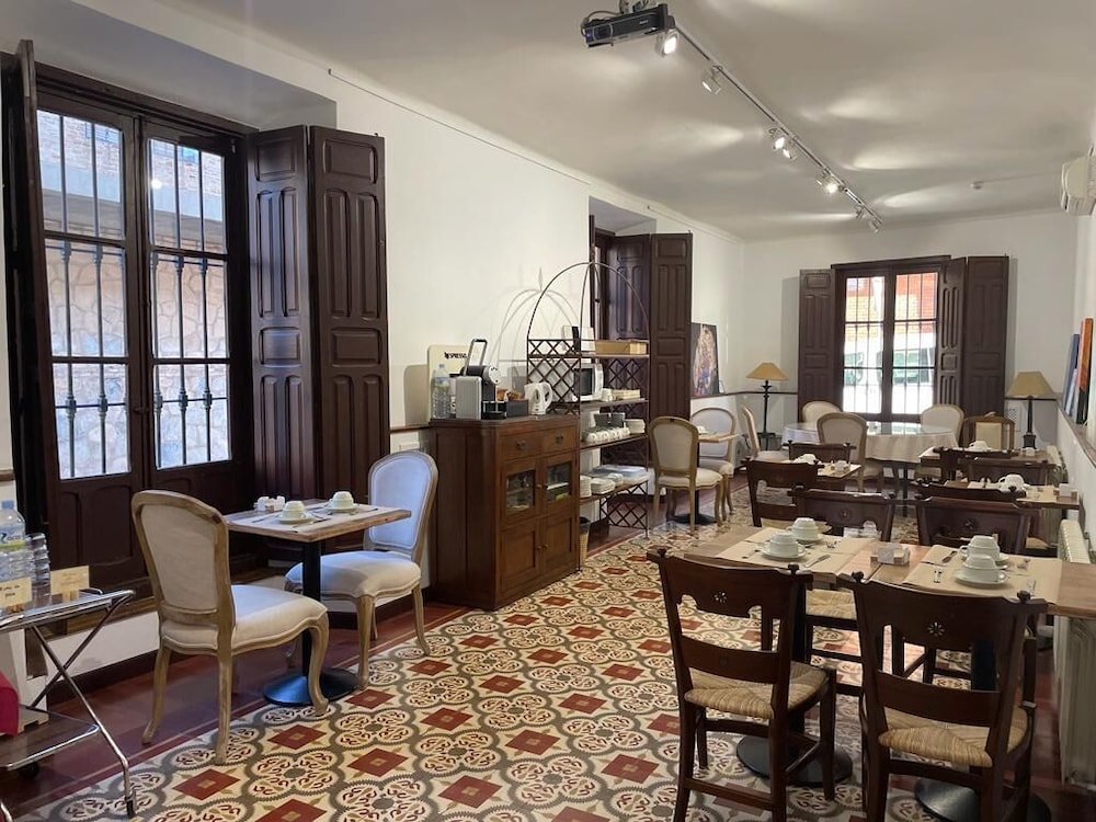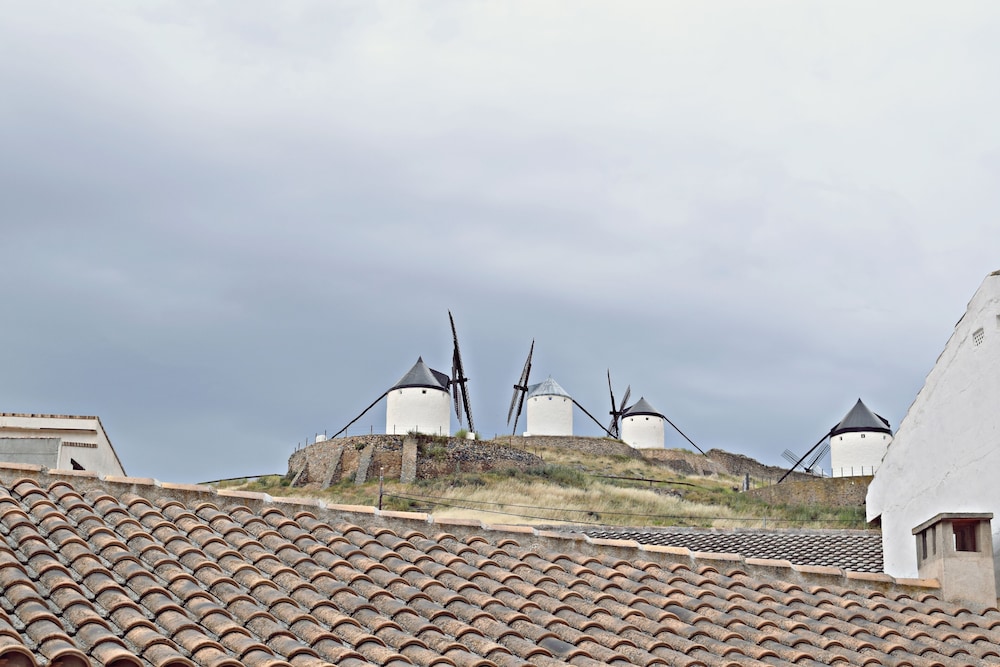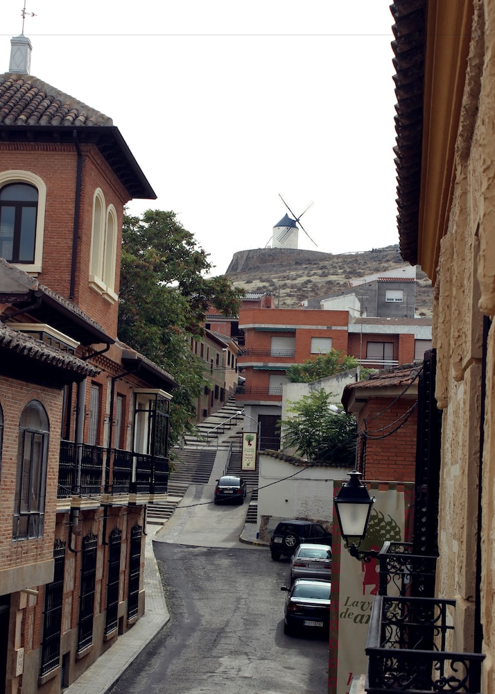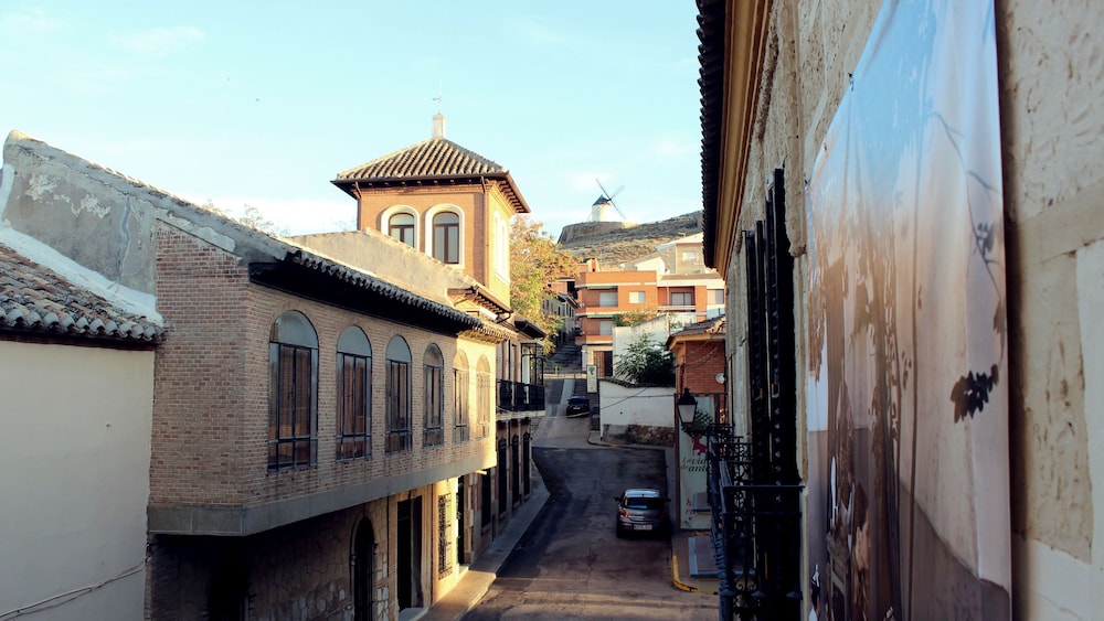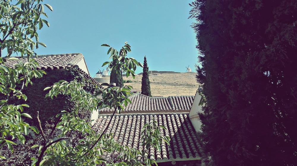 Wonderful hotel, very quirky and lovely. We had to ring the bell for reception and access was given immediately. Staff very friendly and helpful. It made a nice change to have a proper key for the room and also for the entrance to the hotel, instead of credit card style keys. We stayed in the Gigantes room, which was accessed by going out into the courtyard and up a small flight of stairs. The room was very spacious and had a coffee machine and microwave and we also had views of some of the windmills from one or two of our windows. The windmills and castle are within walking distance, albeit a steep climb! The castle is well worth visiting and the windmills look idyllic, although we didn’t go into the working one. We chose to park on the road just outside the hotel as the roads are not too narrow and it all felt very safe. Breakfast was included which was a good continental style collection. There was no one about when we first arrived for breakfast so we just started helping ourselves and a lady came in sometime after to check which room we were in and to check everything was ok. When we checked out, there was no one on the desk so we just left the keys as we didn’t owe anything. We actually found this all to be quite quaint and no problem at all. There are telephone numbers provided if you need to speak to someone when the reception is unmanned. We found our whole stay in Consuegra very relaxing and it was lovely to be woken by the birdsong in the courtyard.