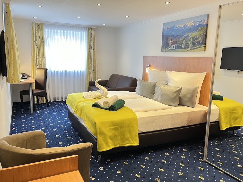 Séjour pour une halte sur la route... À proximité du lac de Constance et en plein centre du village. L'hôtel vient juste d'être rénové et sent encore la colle de la moquette!
