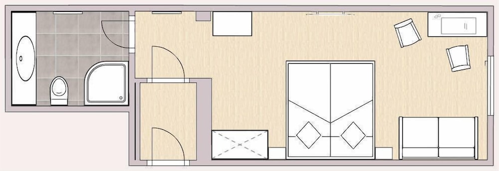 Vi bestilte rommet for to voksne og et barn, men fikk kun en dobbeltseng. Vi kom sent og måtte låse oss inn via en kode som vi gikk da vi ringte. Det fungerte fint, men vi fikk da ikke mulighet til å gi beskjed om at vi hadde fått en sengeplass for lite. Rommet var fint og rent. Landsbyen var koselig.