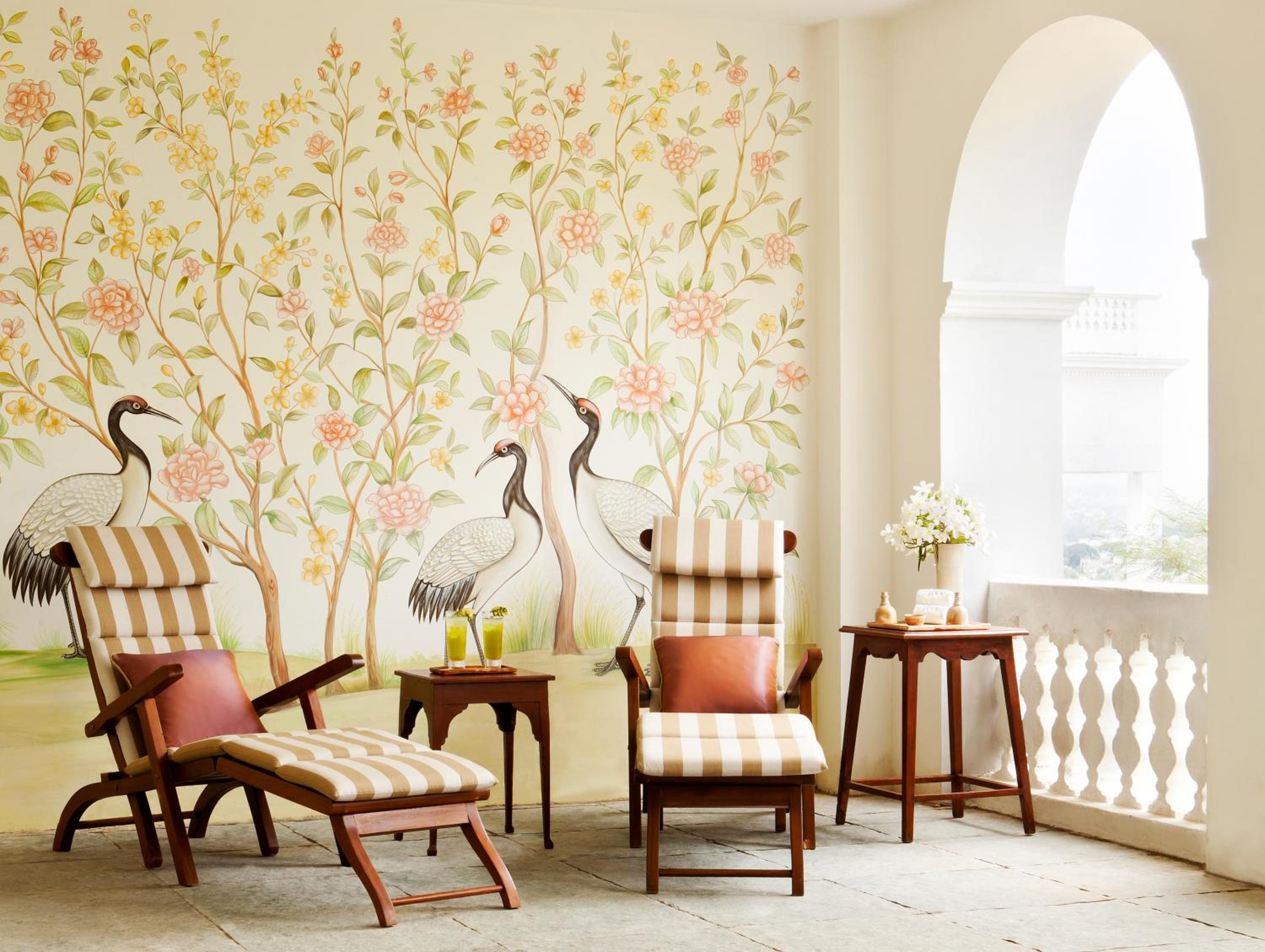 Indulge in spacious rooms adorned with high wood-beamed ceilings, pastel shades, and luxurious furnishings. Unwind in the Palace Library or the Billiards Room for a leisurely afternoon retreat.