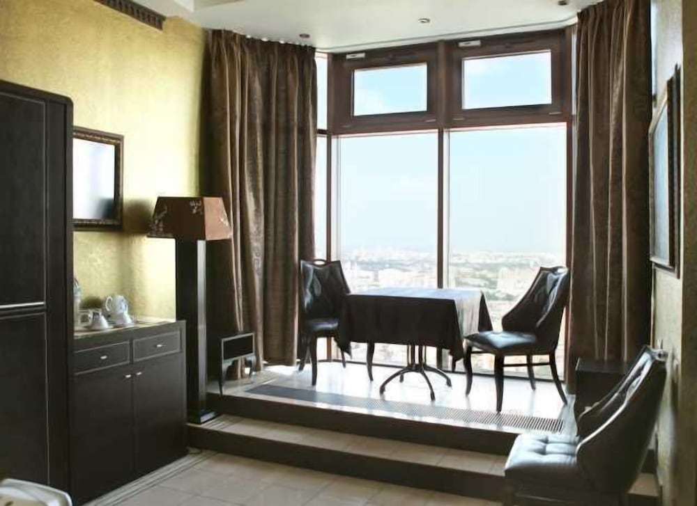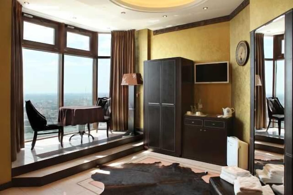 The hotel's main as advantage is the view, you can really see all of Moscow from such height. The downsides are the location - its really far from the center; the staff don't speak English very well; the rooms are pretty old. I'd expect more from a 5 star hotel.