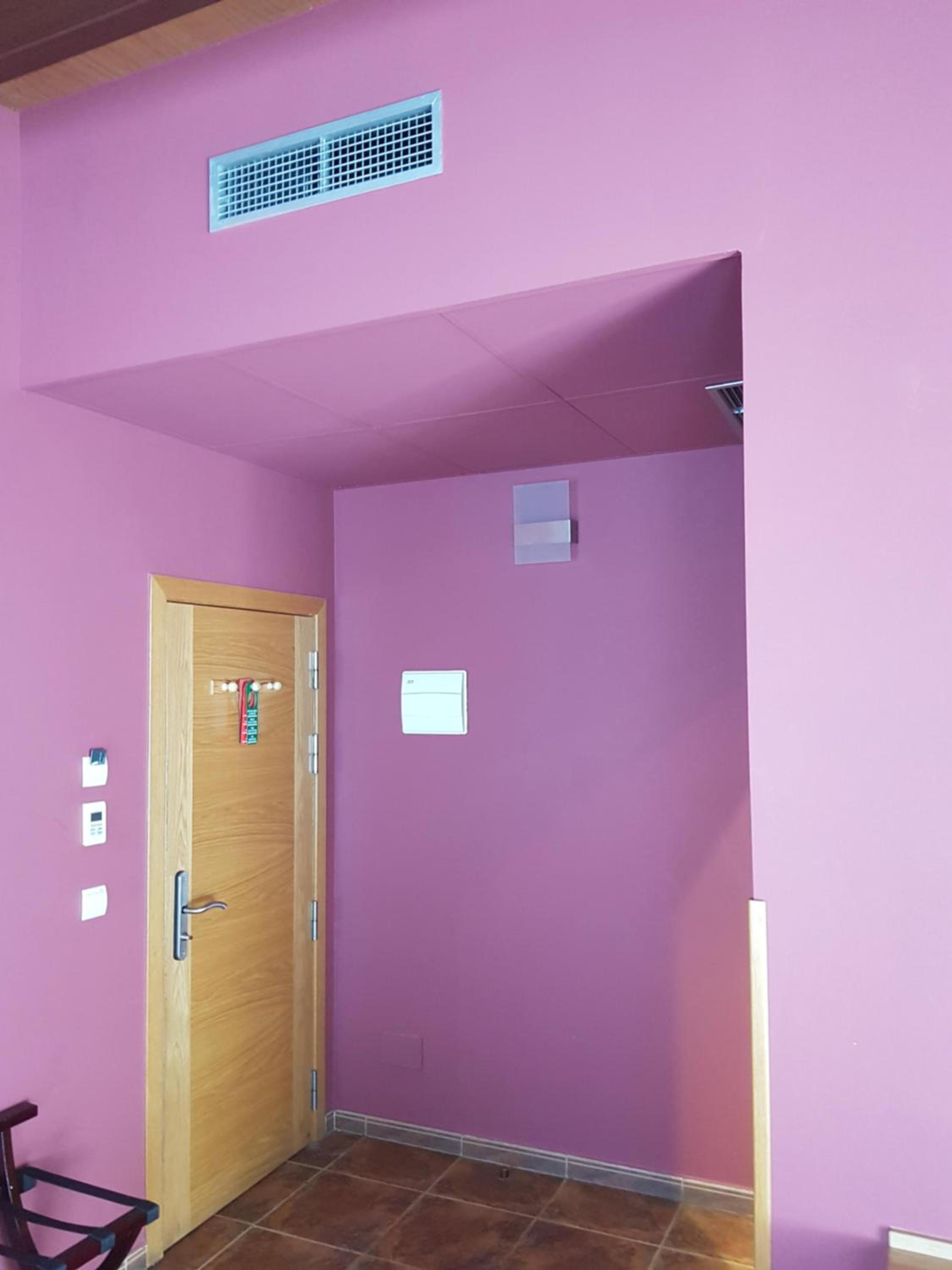 La habitacion al ser enorme tiene un ventanal grandisimo el cual solo se puede tapar con una cortina por lo k a las mañanas entra mucha claridad.
