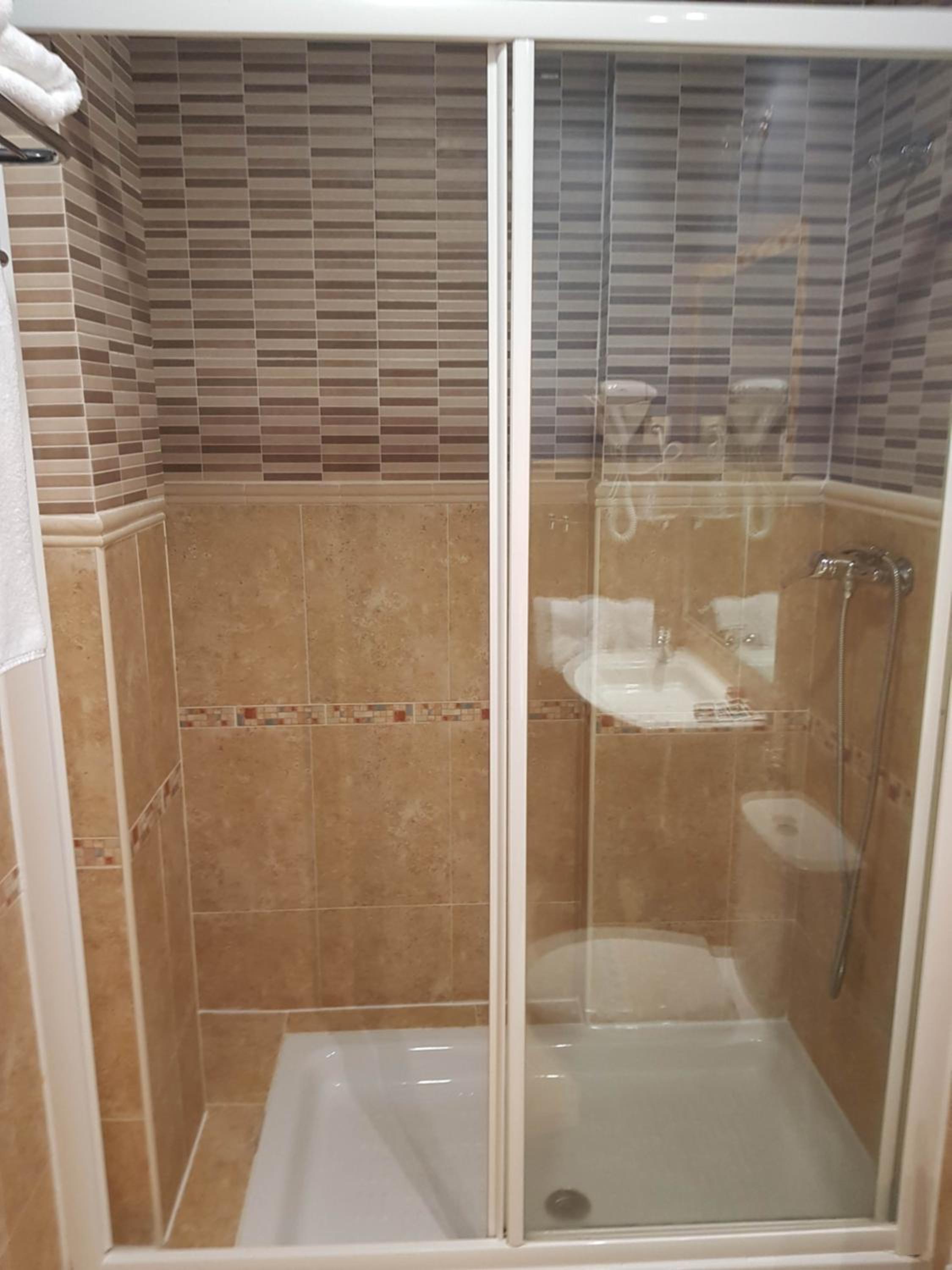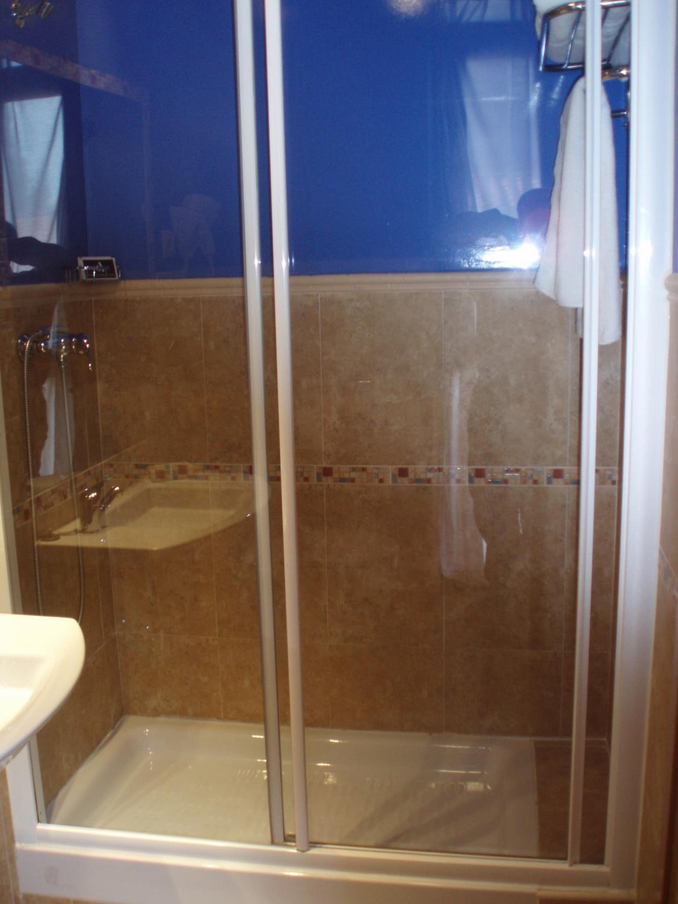 Y el plato de ducha tiene un crista k tapa solo medio plato, por lo k a la hora de ducharte tienes k andar con mucho cuidado para k no e salga todo el agua de la duha.