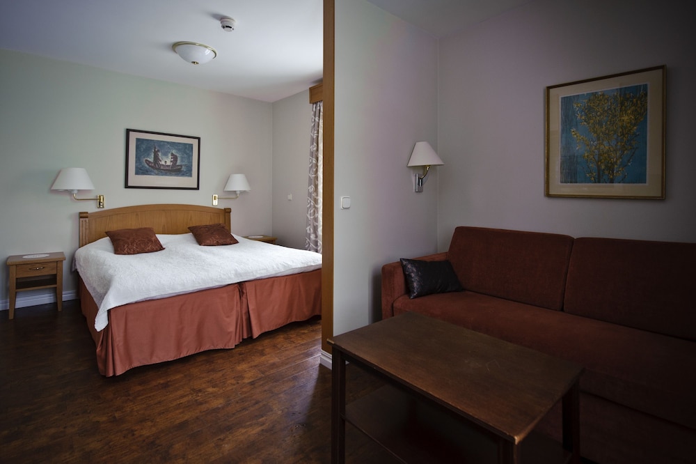 Trevlig rum med bra säng. Personal i repan och restaurang mycket trevlig. Lite trångt i badrummet men kan tänka mig att det är svårt i en så gammal byggnad.