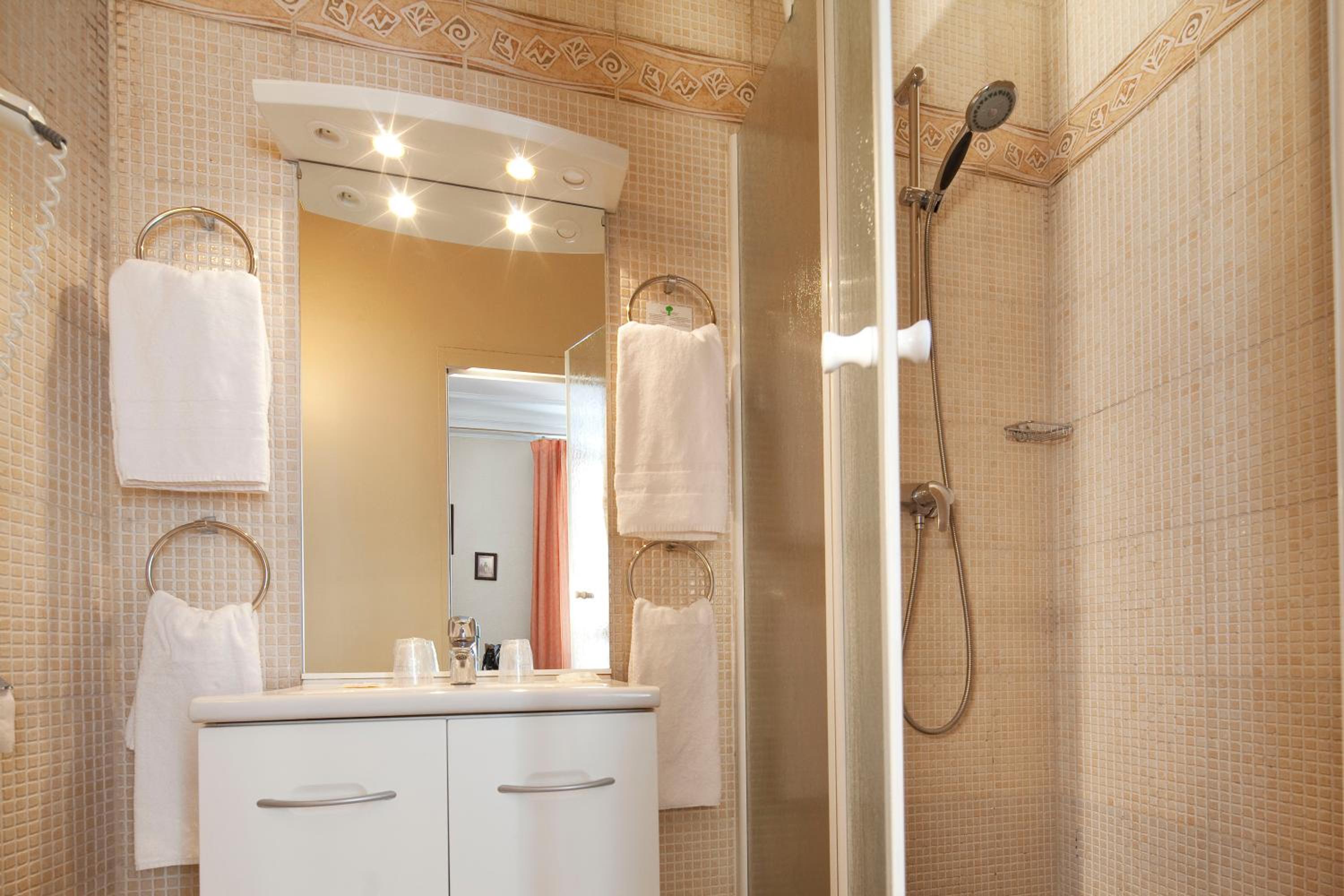Duş ve el yıkama jelleri tek kullanımlık poşet olmasa daha iyi olabilir ama çok da sorun oluşturmadı. Duş perdesi biraz sevimsizdi ama o da olabildiğince ergonomik yapılmaya çalışılmış. Odalarda poşet granül kahve yerine minik bir kahve makinesi olabilirdi ama granül kahveleri de kötü değildi.