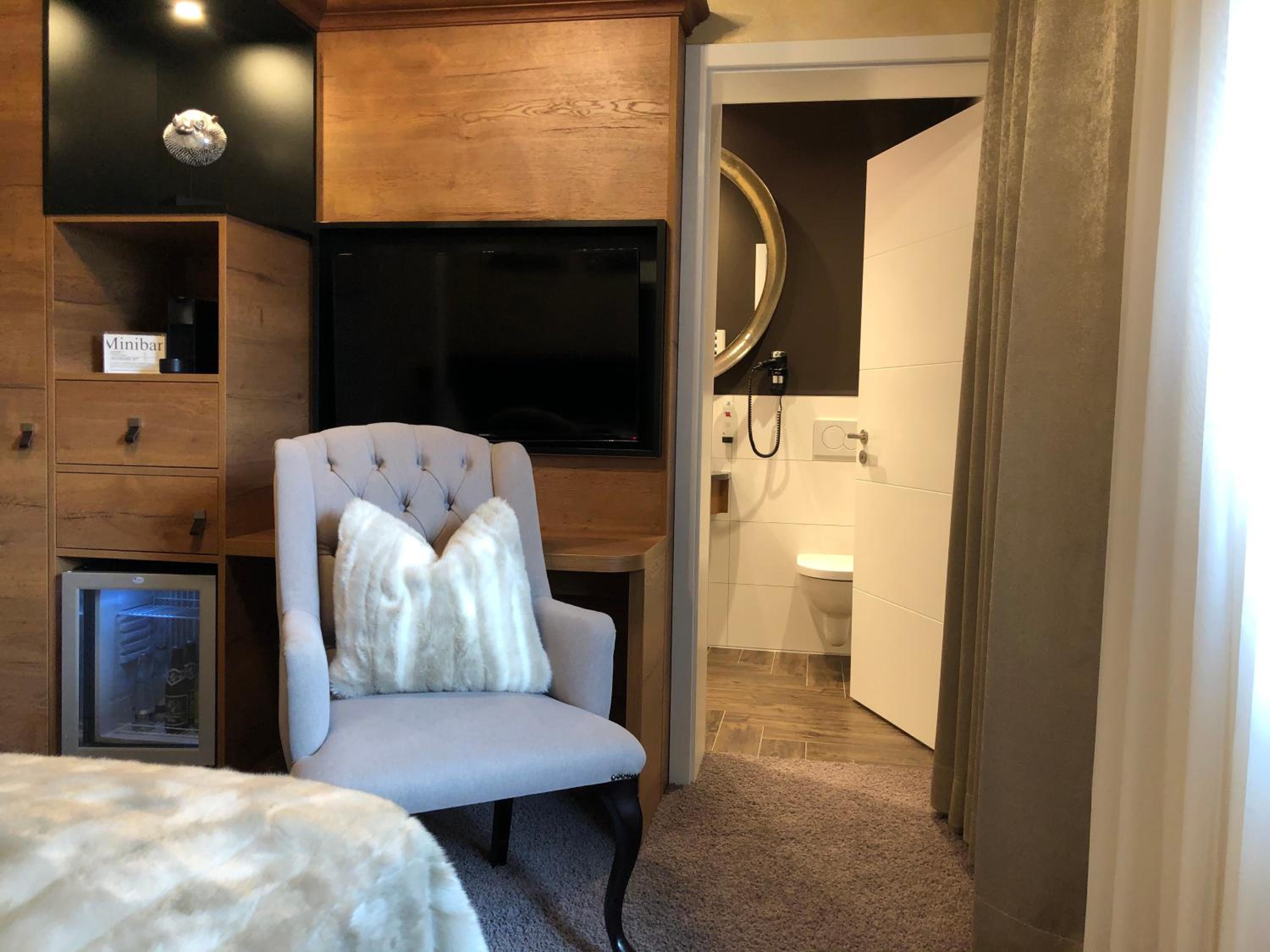 Grander-Wasser, schöne, kleine Sauna. Tolles Frühstück, gigantische Terauswahl, sehr komfortables Bett.