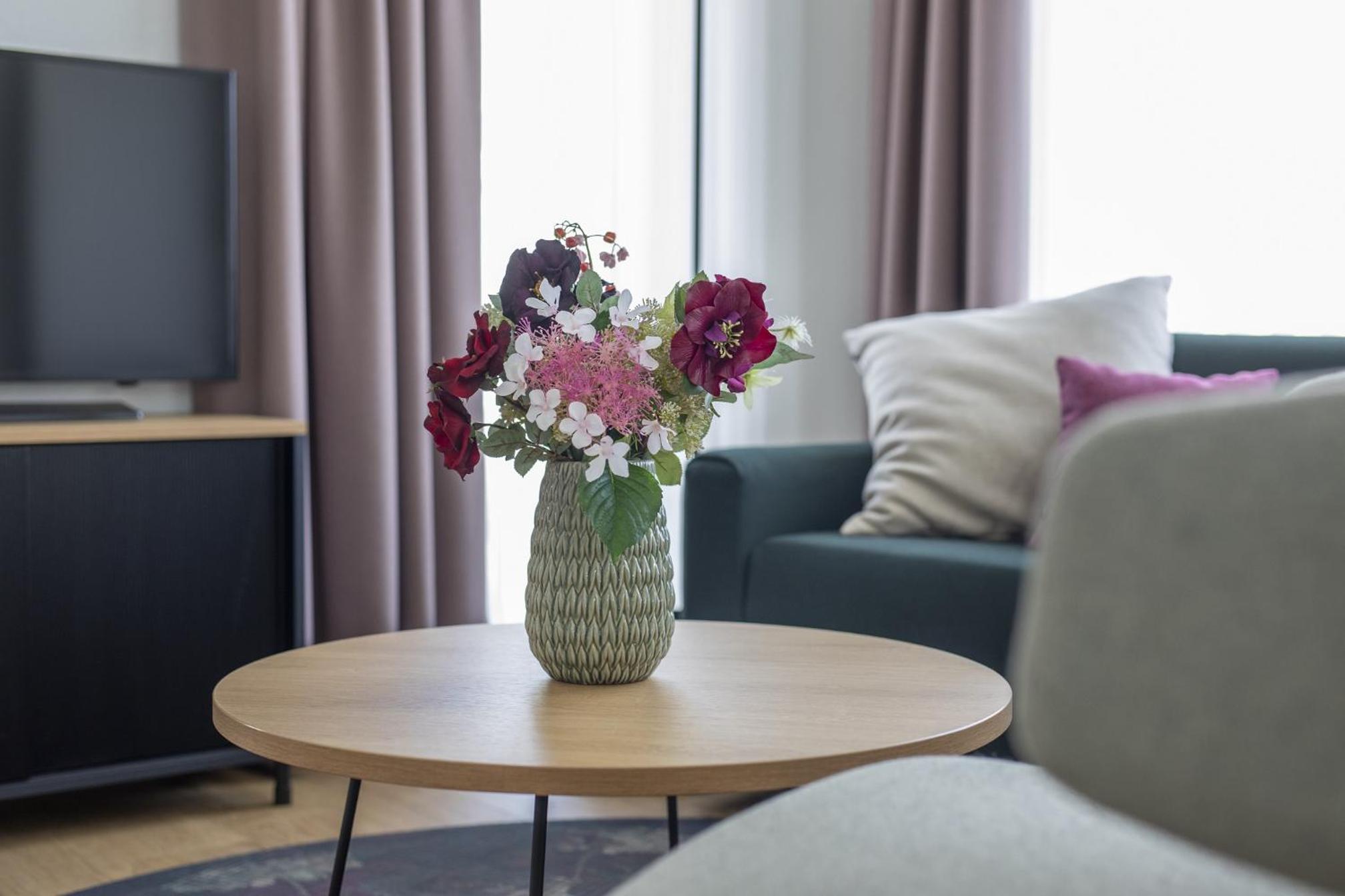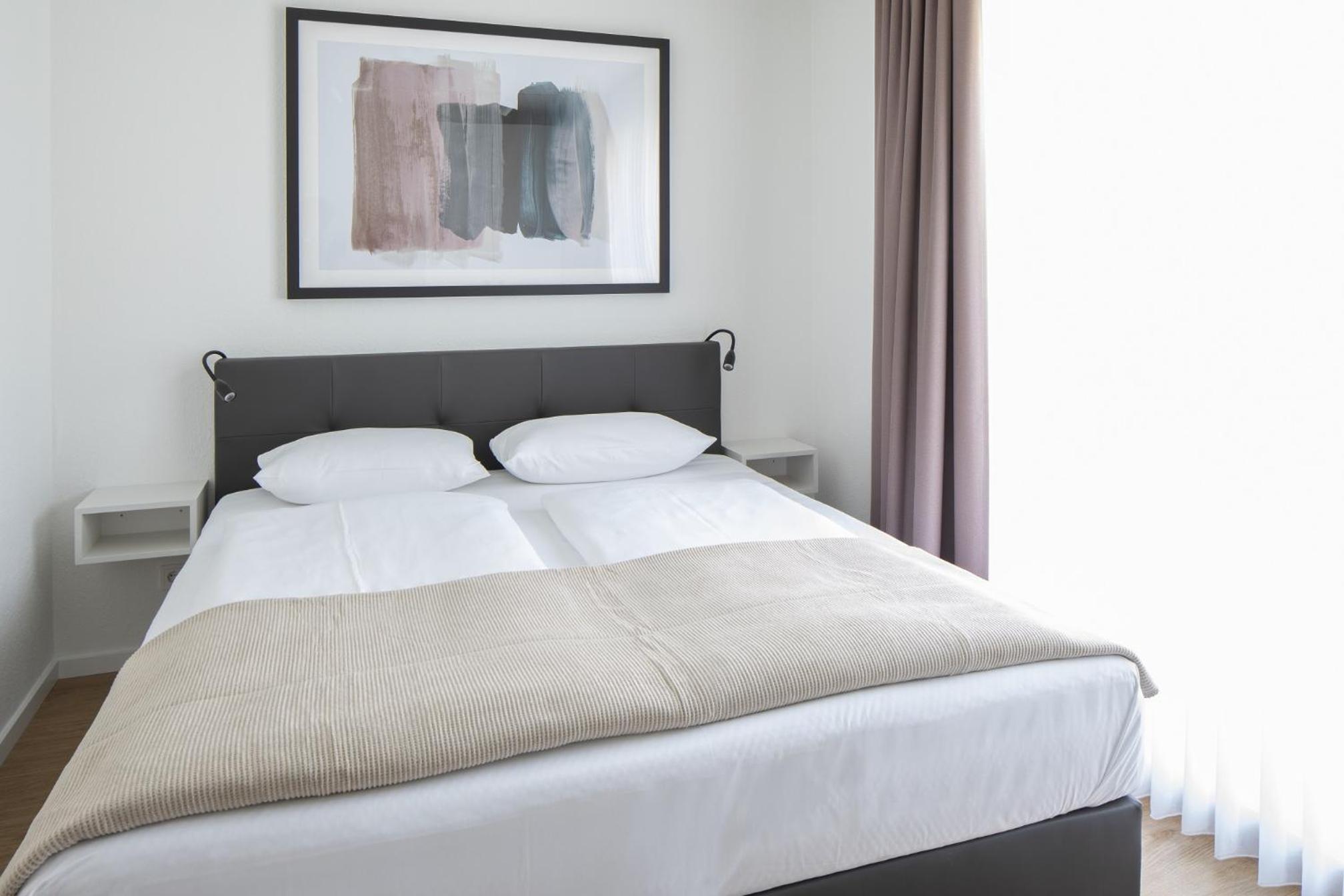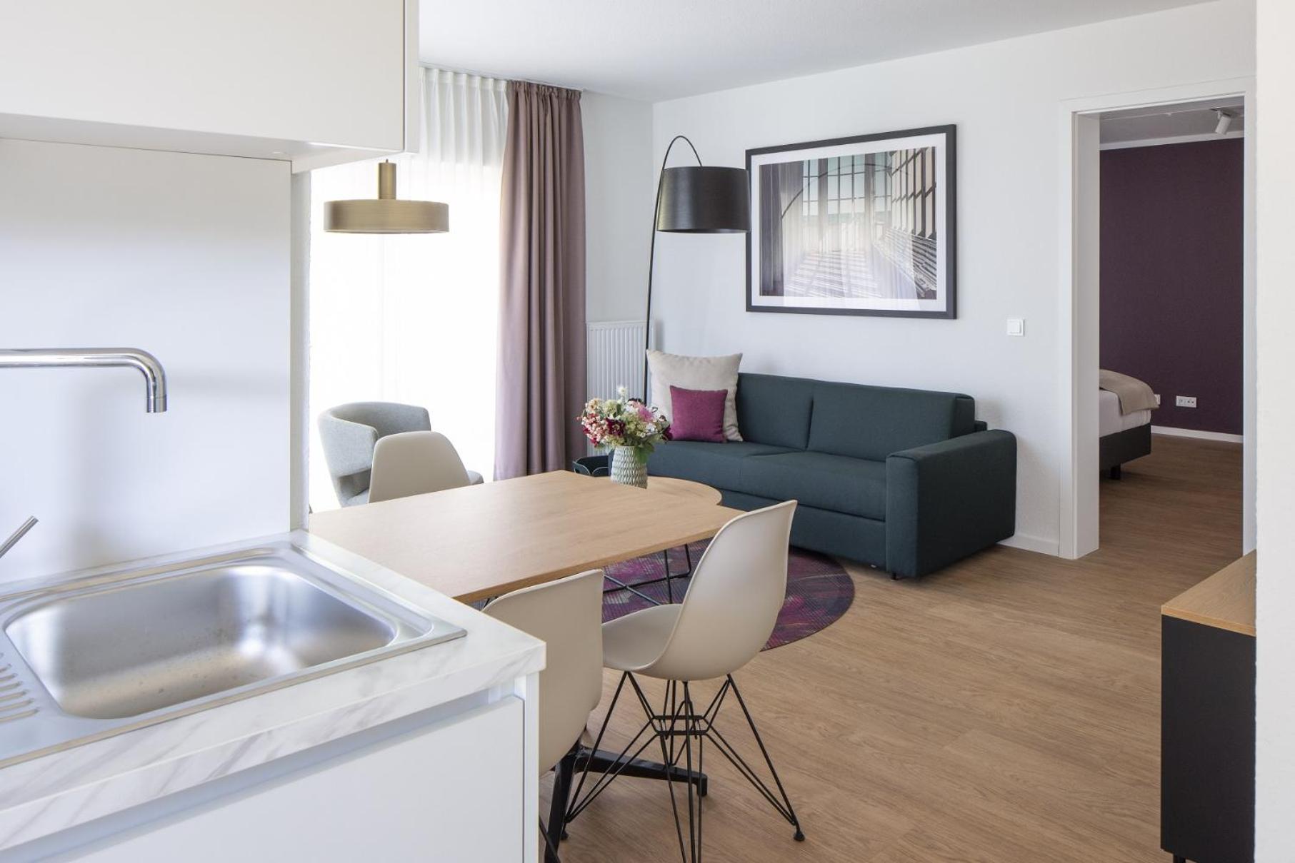 Wunderschöne, helle und saubere Wohnung mit Balkon, geschmackvoller Einrichtung und bequeme Betten. Toller Sauna- und Fitnessbereich mit Schwimmbad. Das Frühstück war besonders gut; qualitativ hochwertige Lebenmittel und es fehlte nichts.
