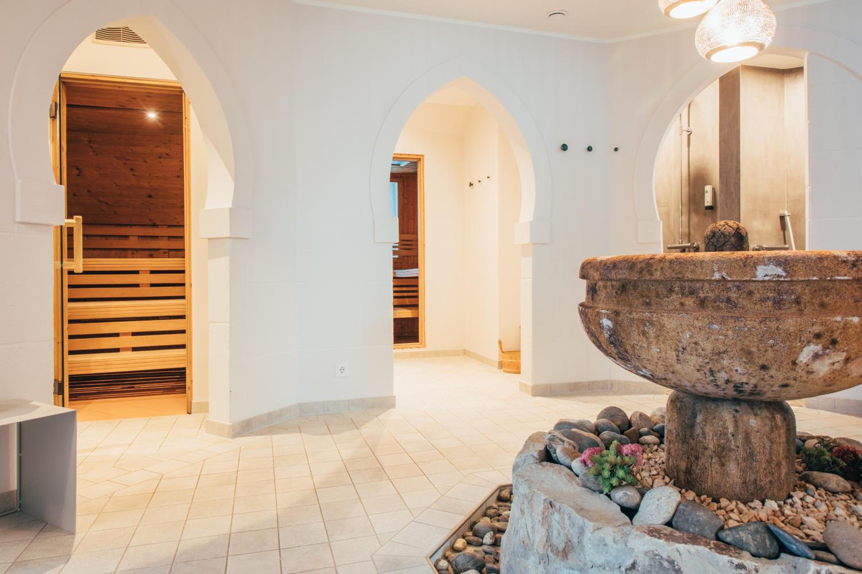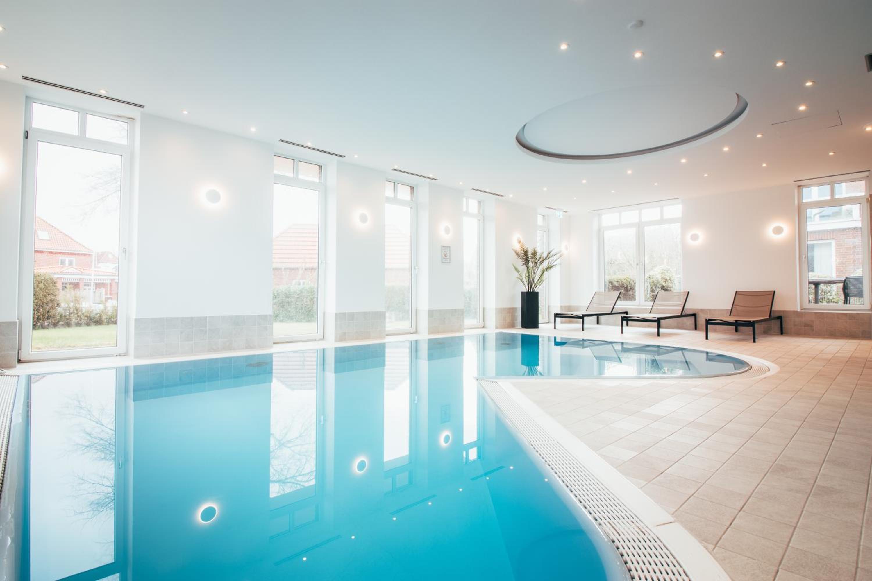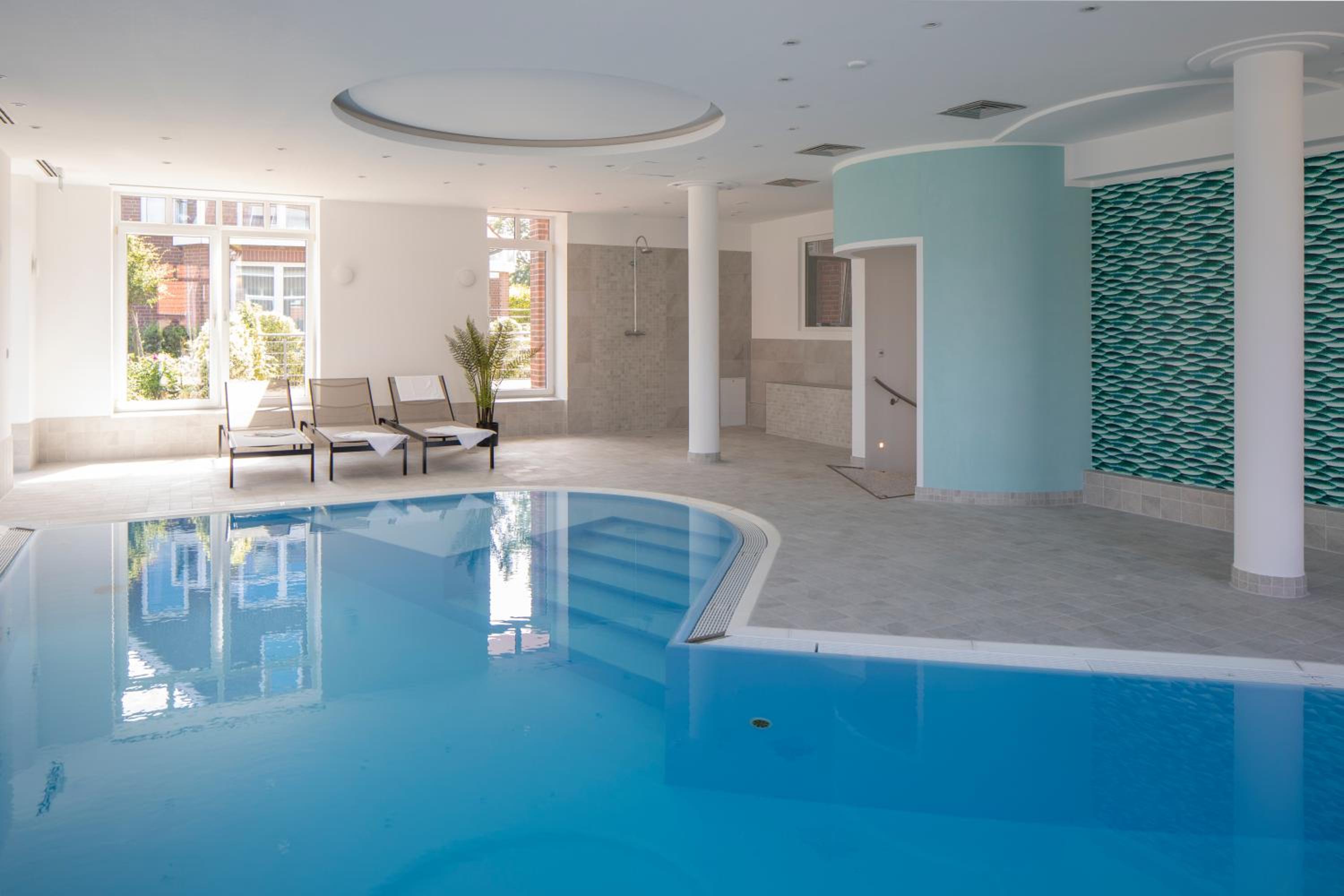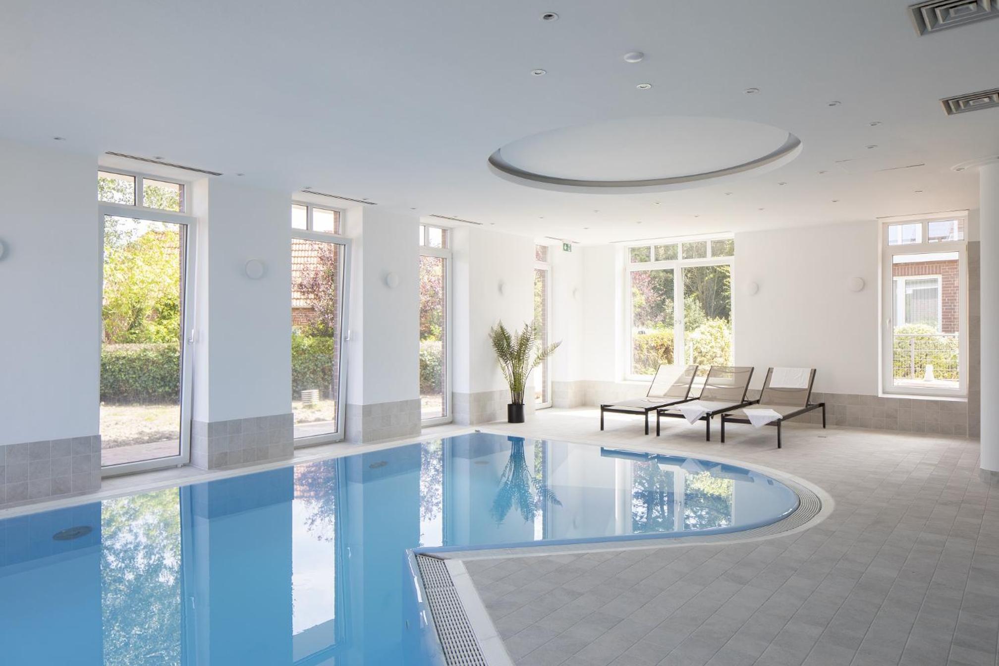 Hotel Upstalsboom Langeoog offers a range of luxurious amenities such as an indoor swimming pool, sauna, and Turkish bath for guests to unwind and relax during their stay.