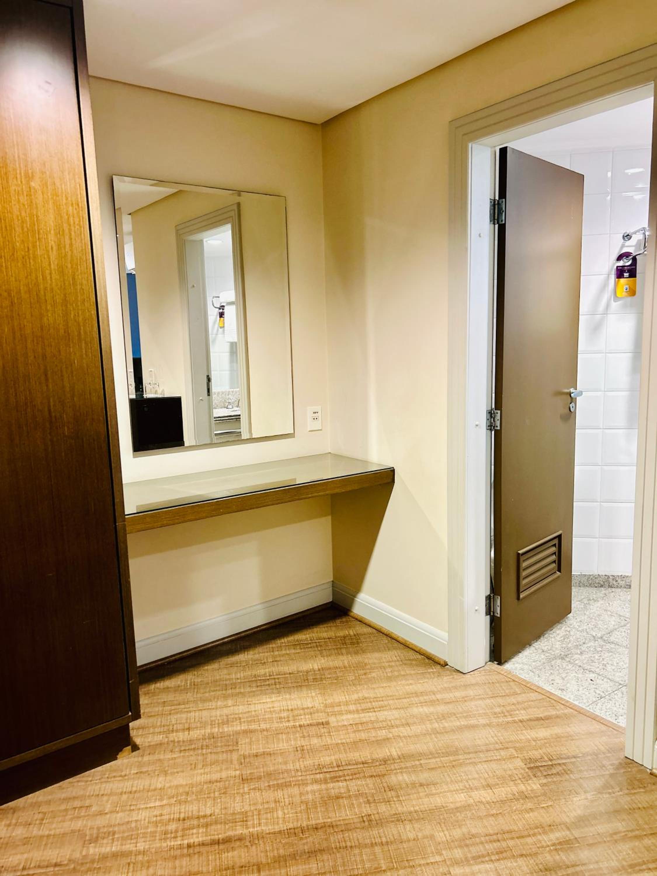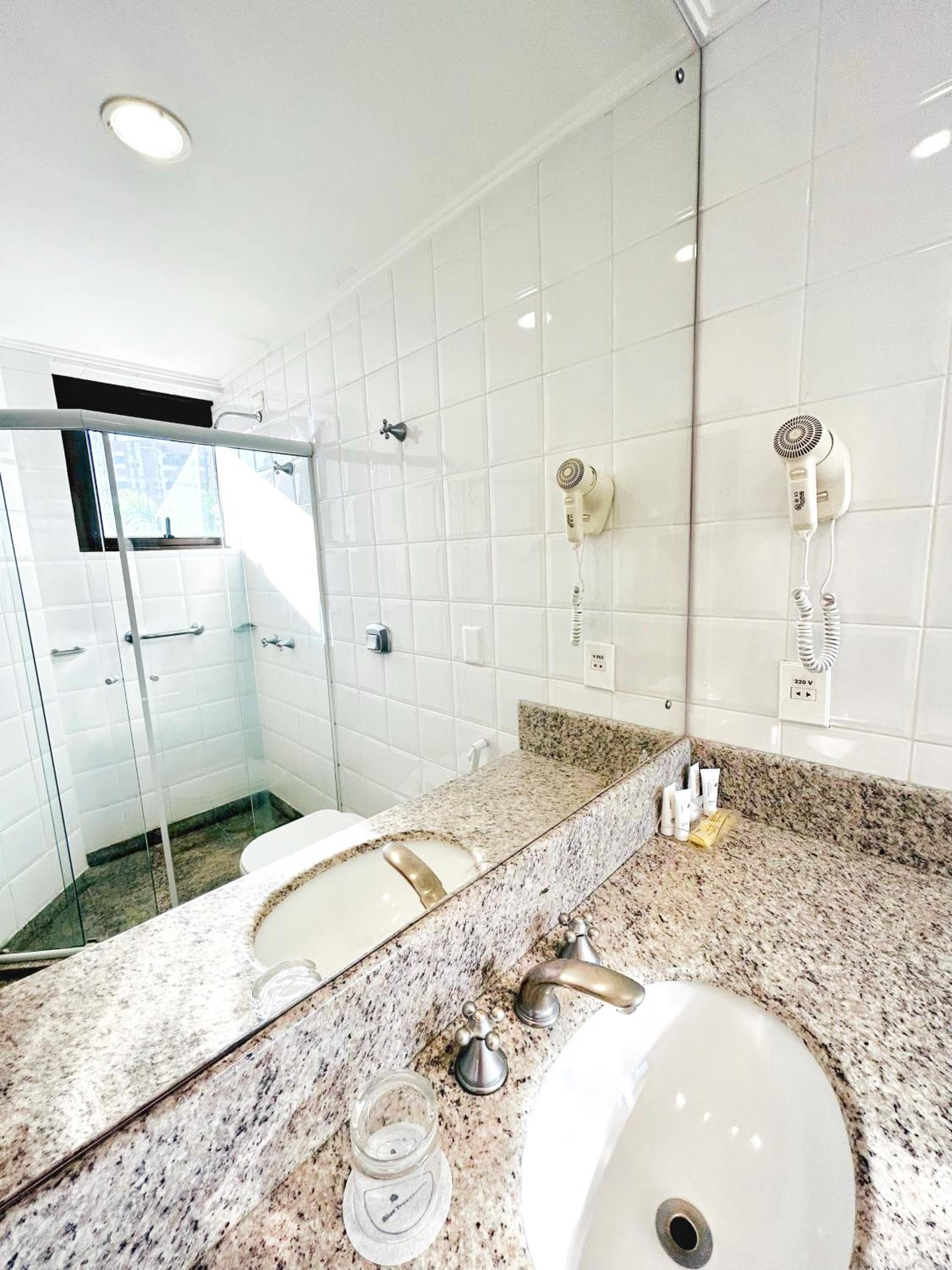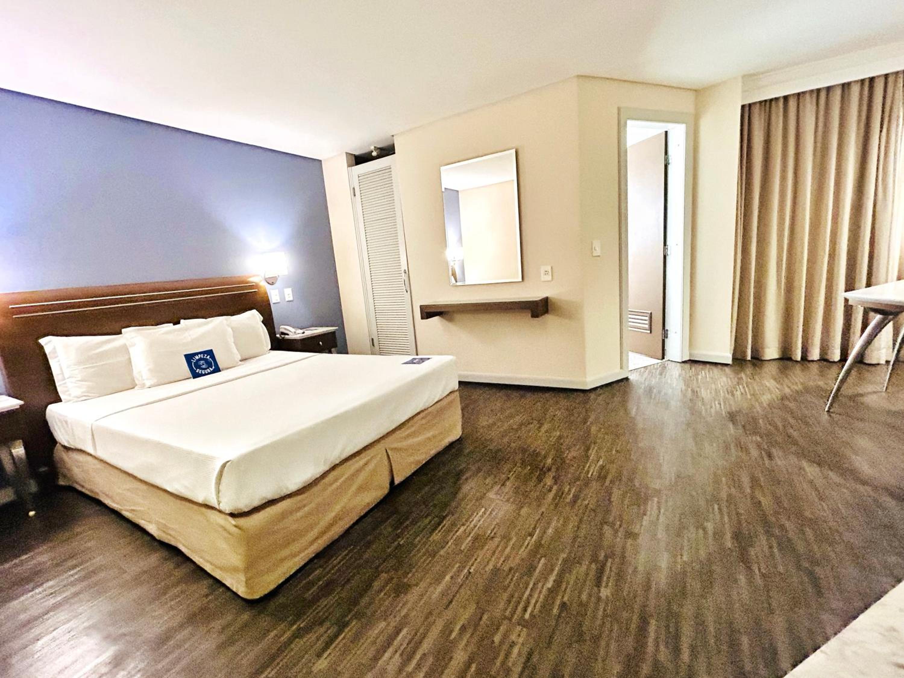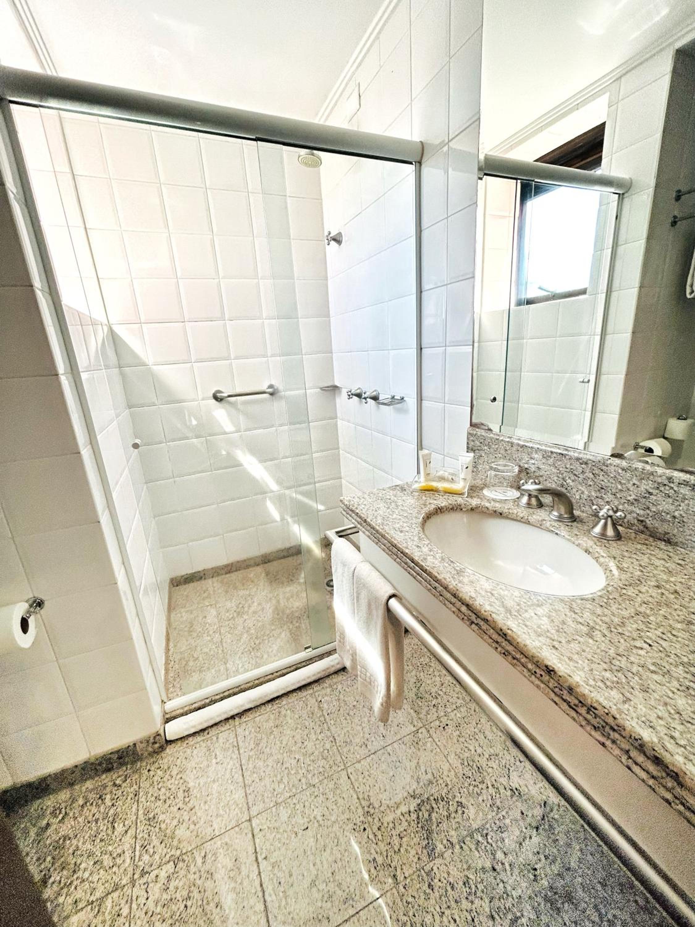 Localização excelente, no centro. Quarto amplo, limpo. Banheiro um pouco apertado, chuveiro bom. Café da manha bom.