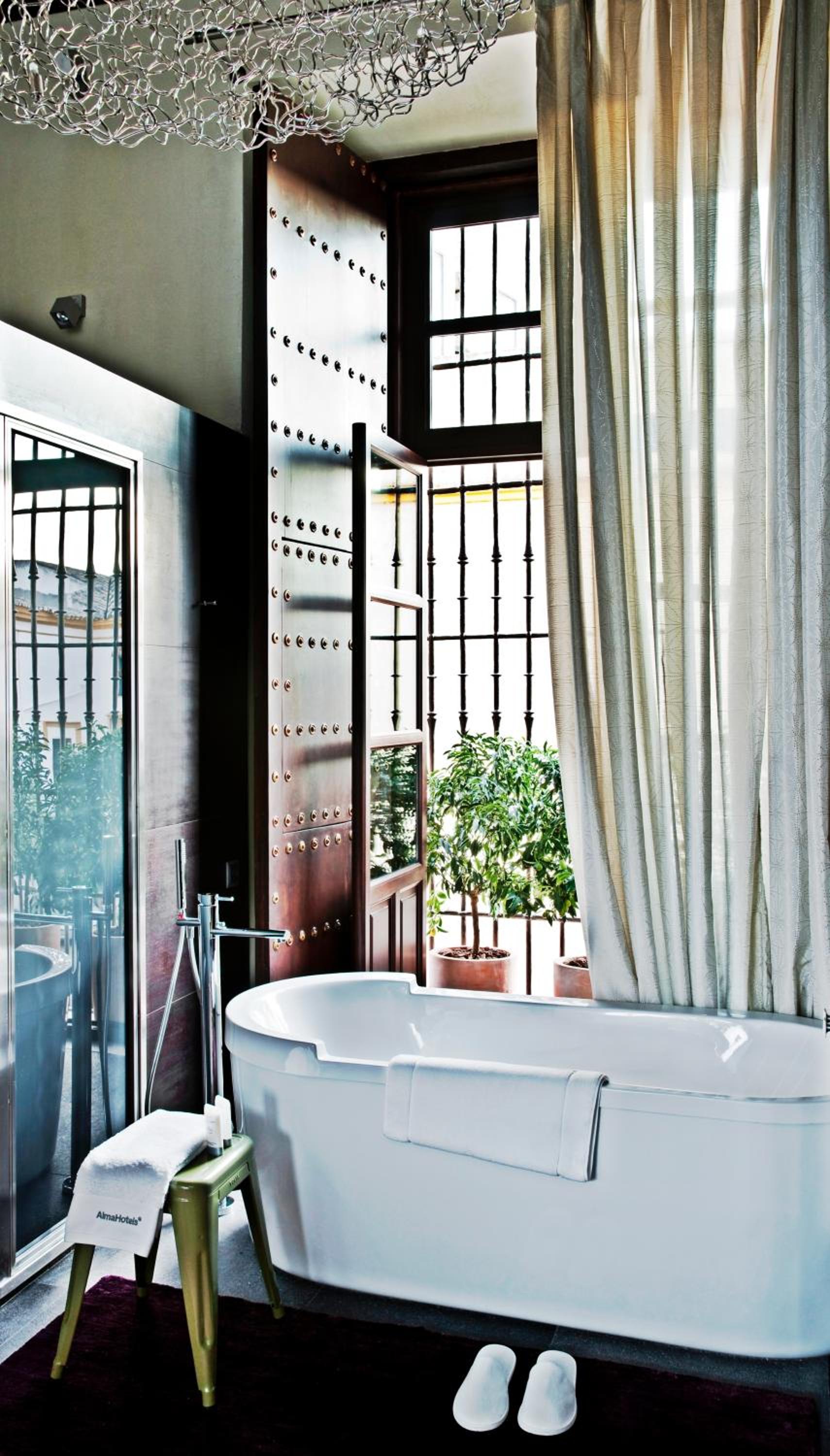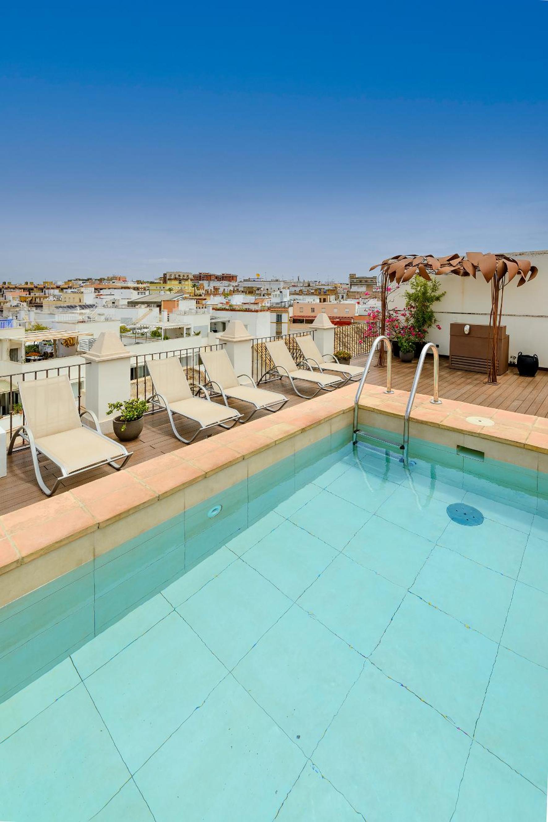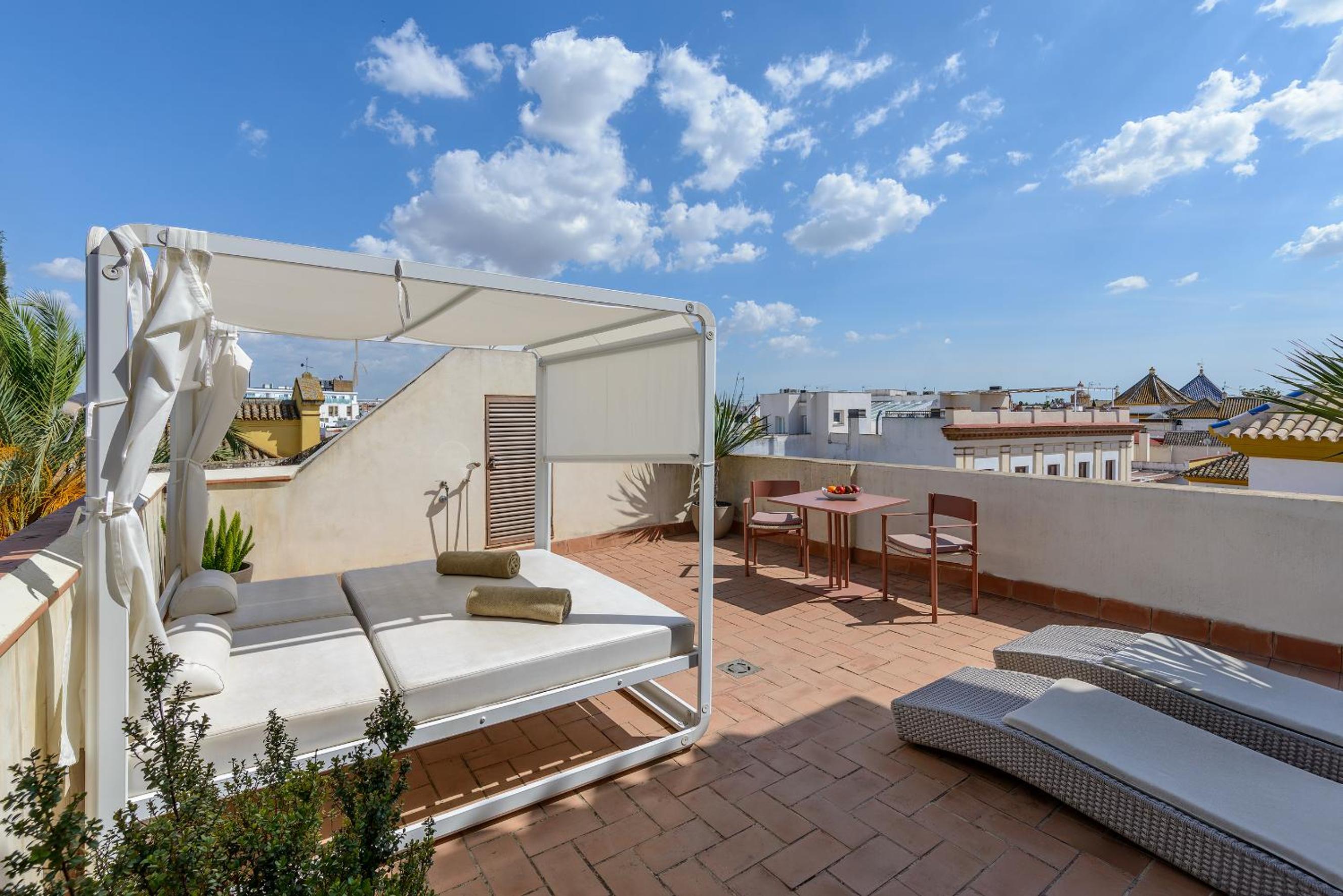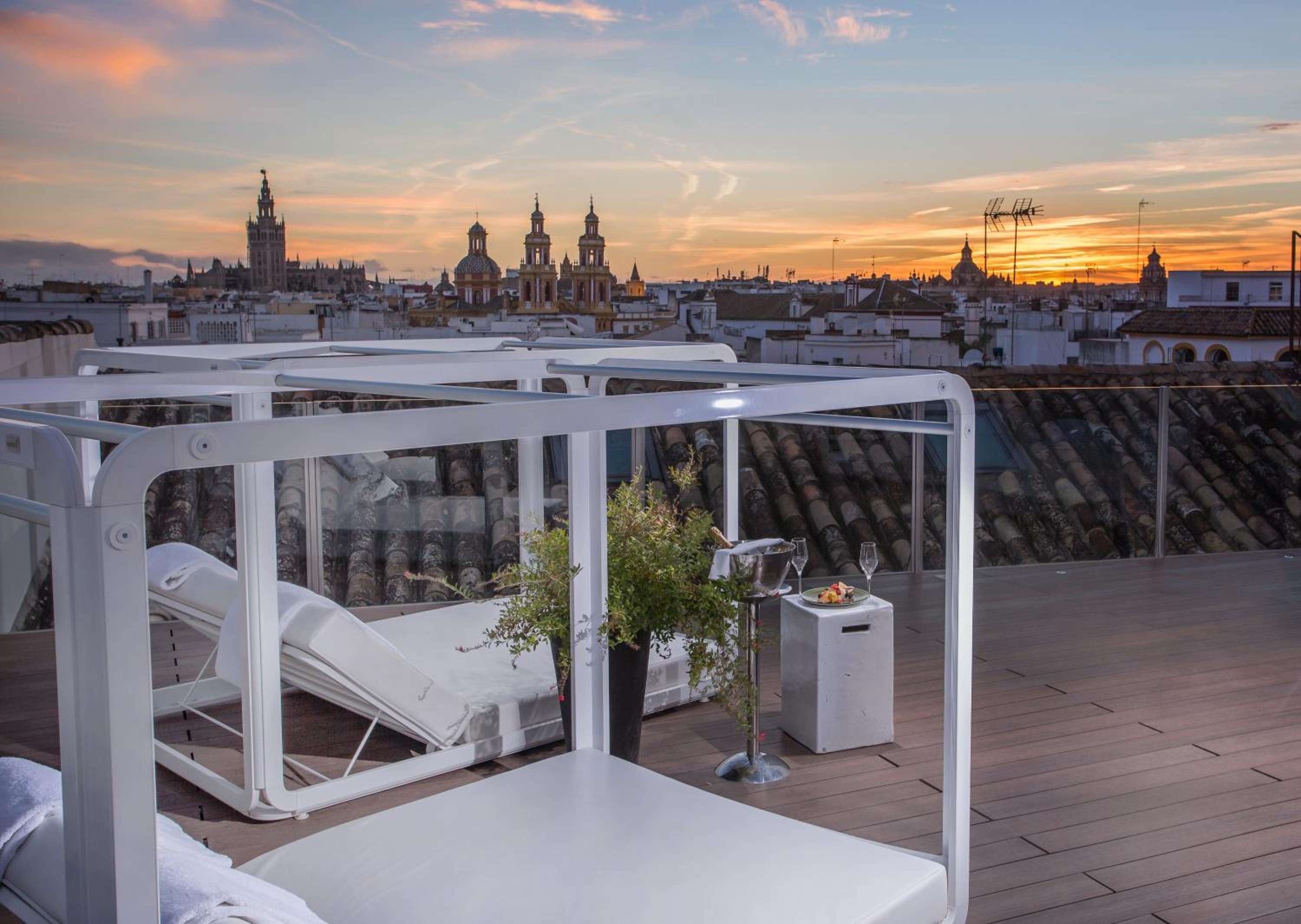 Mostly very lovely people working at the hotel, in a space that is a cool concept for Sevilla- not a typical hotel. Lots of rooms tucked away all over the hotel spaces. Nice cozy bar area. Good food! And a very nice sunny rooftop patio. A little out of the way from the crowds too.