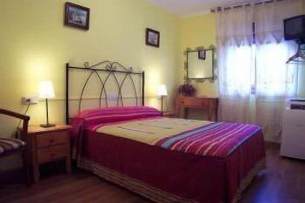 Llegamos nosotros el sábado y no pudimos entrar a las 12:30 porque no habían terminado de limpiar, había salido un grupo grande y nos pidieron por favor, que a partir de las 13 o 13:30 nos pasasemos, por lo que optamos de hacer excursión y comer por ahí y volver luego por la tarde. Cuando vimos la habitación, alucinamos. Una cama pegada prácticamente a la pared con una mesilla de 50 cm y seguida una litera contra pared, al fondo una silla con una mesa redondita de cristal y todo, pegado prácticamente contra la cama... no pude casi ni sacar el equipaje a la habitación y me fui organizando con el matelero del coche.