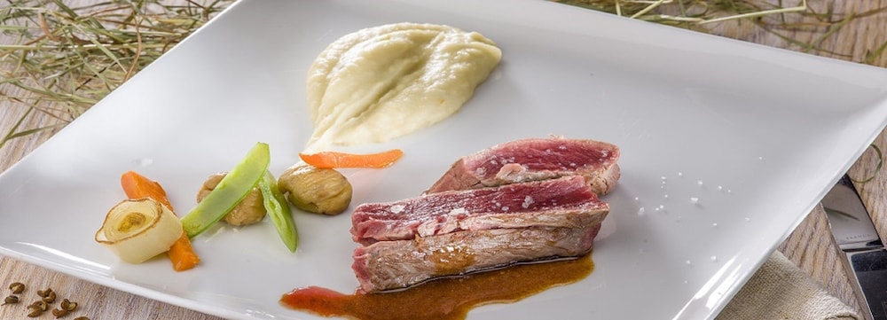 Absolutely amazing evening meal, a gourmet delight. We had the 'plats' but several mid courses, amuse-bouches etc arrived too and everything was delicious. The room was small though and very little hot shower water in the morning (although tap water was hot). Breakfast was okay but not special.