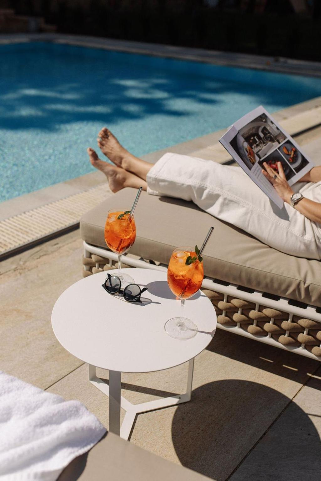 Indulge in the opulence of 5-star rooms and a modern spa area with indoor pools, a bathing grotto, and a hot tub. Enjoy sauna, steam bath, massages, beauty treatments, and vinotherapy at the spacious spa.