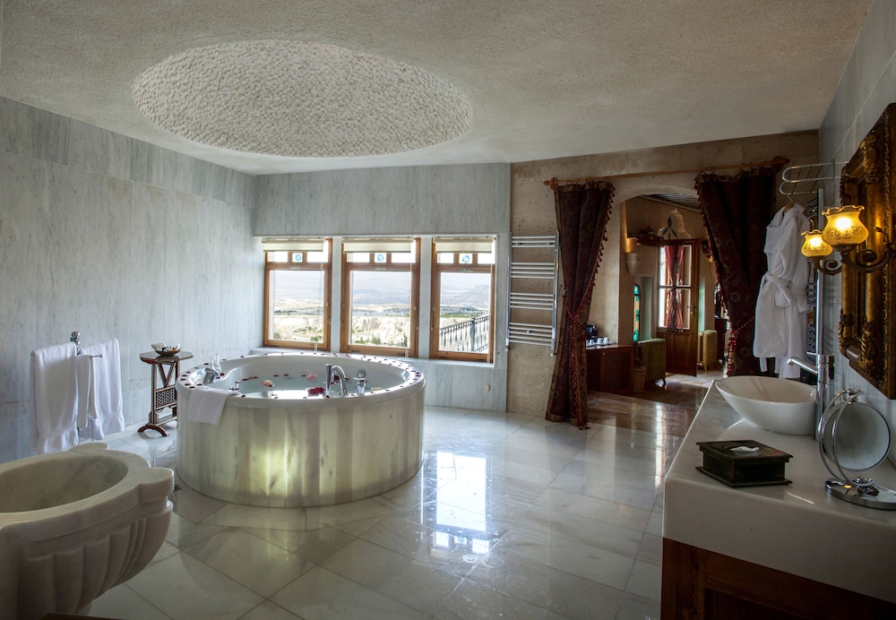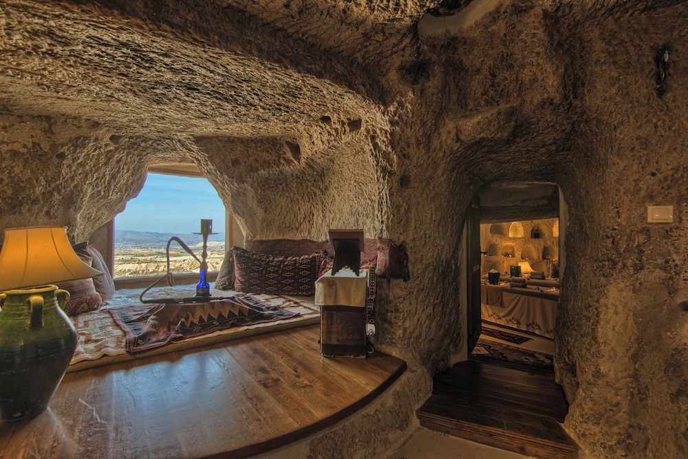 Pros: Great location in Uchisar, walking distance from the castle and 10-min drive from Goreme. Stunning property, arguably the most beautiful in the whole region of Kapadokya! Being an animal lover, the fact that the property has 3 house dogs was a great plus. Staff members were courteous and attentive. The bedroom was a dream--more than a room, it was like an apartment, including 2 full bathrooms, 2 living rooms, an indoor pool, a sauna, a jacuzzi, and a terrace. The food was outstanding: breakfast was bountiful and dinner was exceptional at Lil'a.