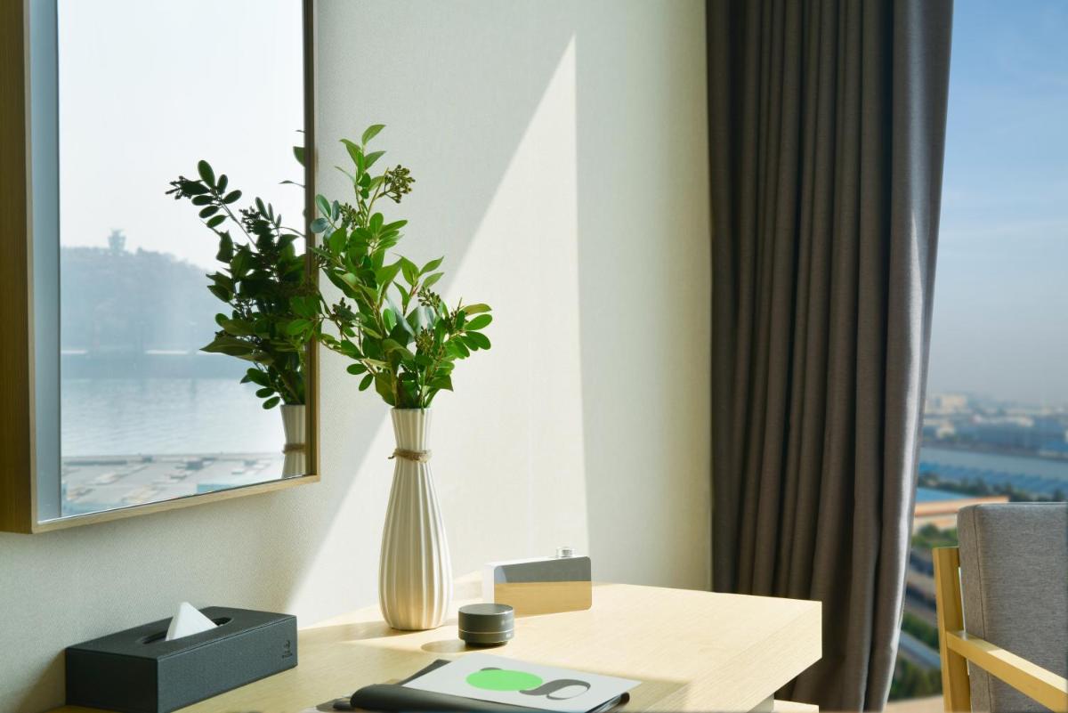 The room was neat and bed was comfortable. Standard room. Carpet a bit stained. The main hall very attractive and welcoming. Breakfast was expensive but very good and deliscious. Restaurant in the same complex. Location was not ideal but close to Incheon Cruise port. Chinatown was walking distance. Not too many stores, mostly local restaurants. SEOUL was quite a distance. Worthbthe drive! very easy to get a taxi, staff helped and very pleasant. Fairly priced.