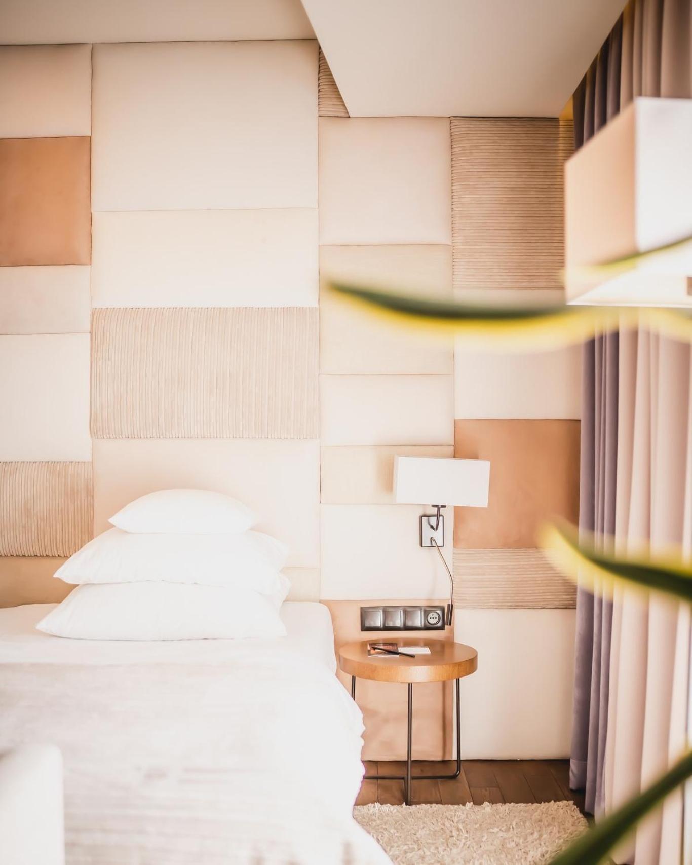 Wystrój i architektura hotelu, dobre sauny, wygodne pół twarde łóżka