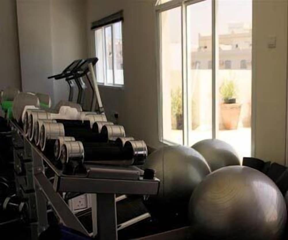 We stayed for 2 nights to sightsee. The hotel is a bit rundown and bathroom not close to bedroom. We were given an upgrade to a 1 bedroom with large kitchen which was nice but not really needed for a 2 night stay. The hotel is hard to find due to numbering system of roads in Muscat.