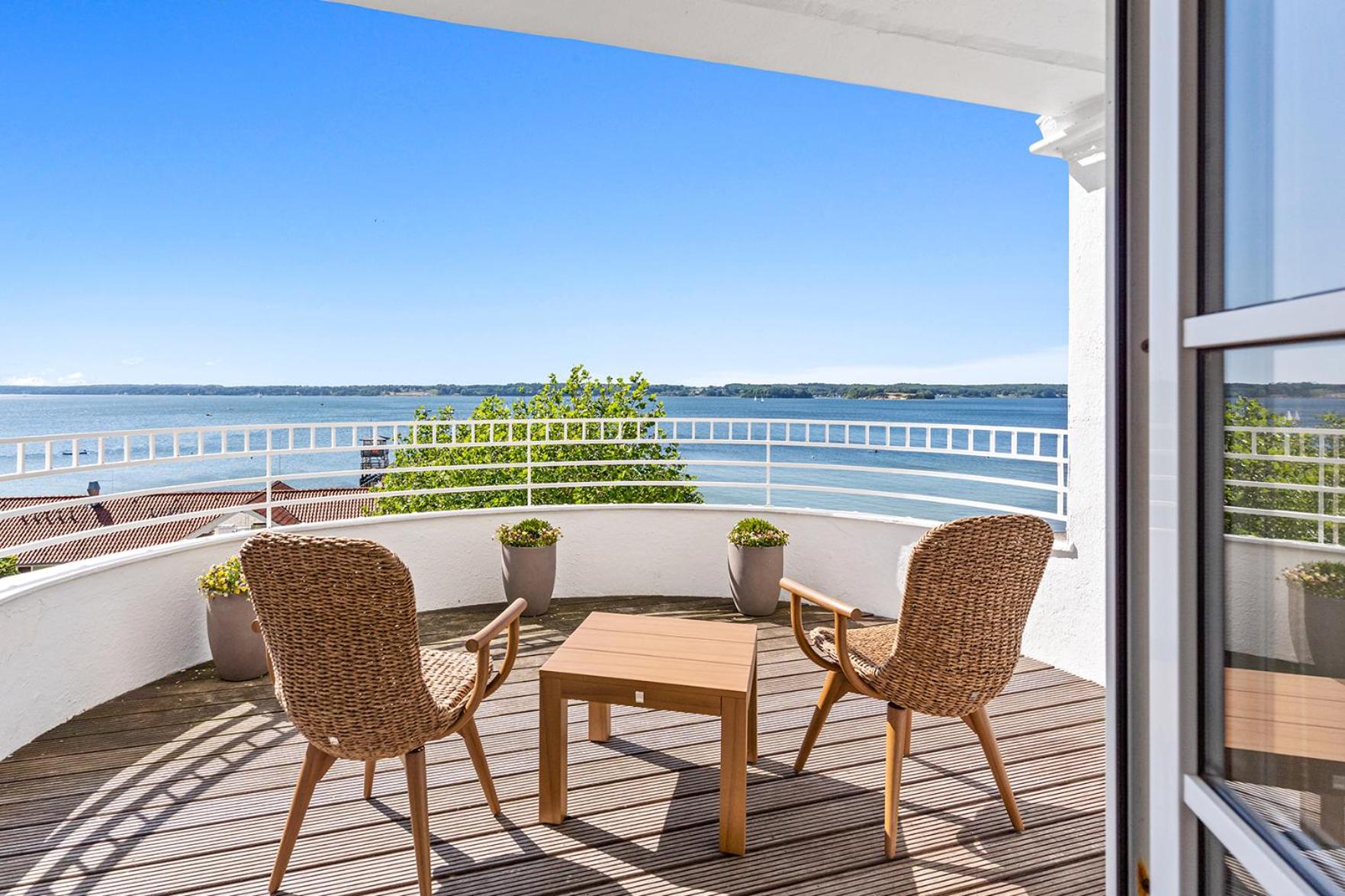 Conveniently located on the sandy beaches of the Flensburg Fjord, this stylish hotel serves as the perfect starting point to explore the region's golf courses, Glücksburg Castle, and Nordic Walking Park.
