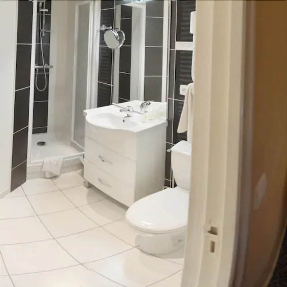 Réservation d'une seule nuit pour la semaine des 24 heures du Mans. J'ai constaté que la chambre n'était pas équipée de climatisation. J'ai constaté aussi que le meuble salle de bain les deux tiroirs étaient inutilisable. Puis j'ai constaté qu'il n'avait qu'un demi rouleau de papier toilette sans avoir un stock. Après la chambre est assez grande et le lit est confortable. L'entretien de cette chambre et moyen. Le personnel est très agréable.