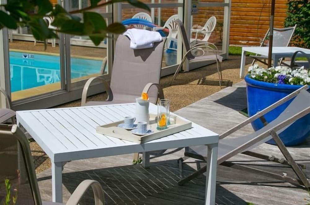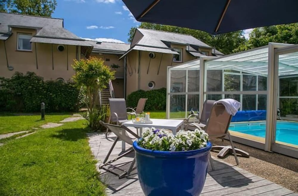 Enjoy the indoor pool and scenic garden views at Relais de Kergou.