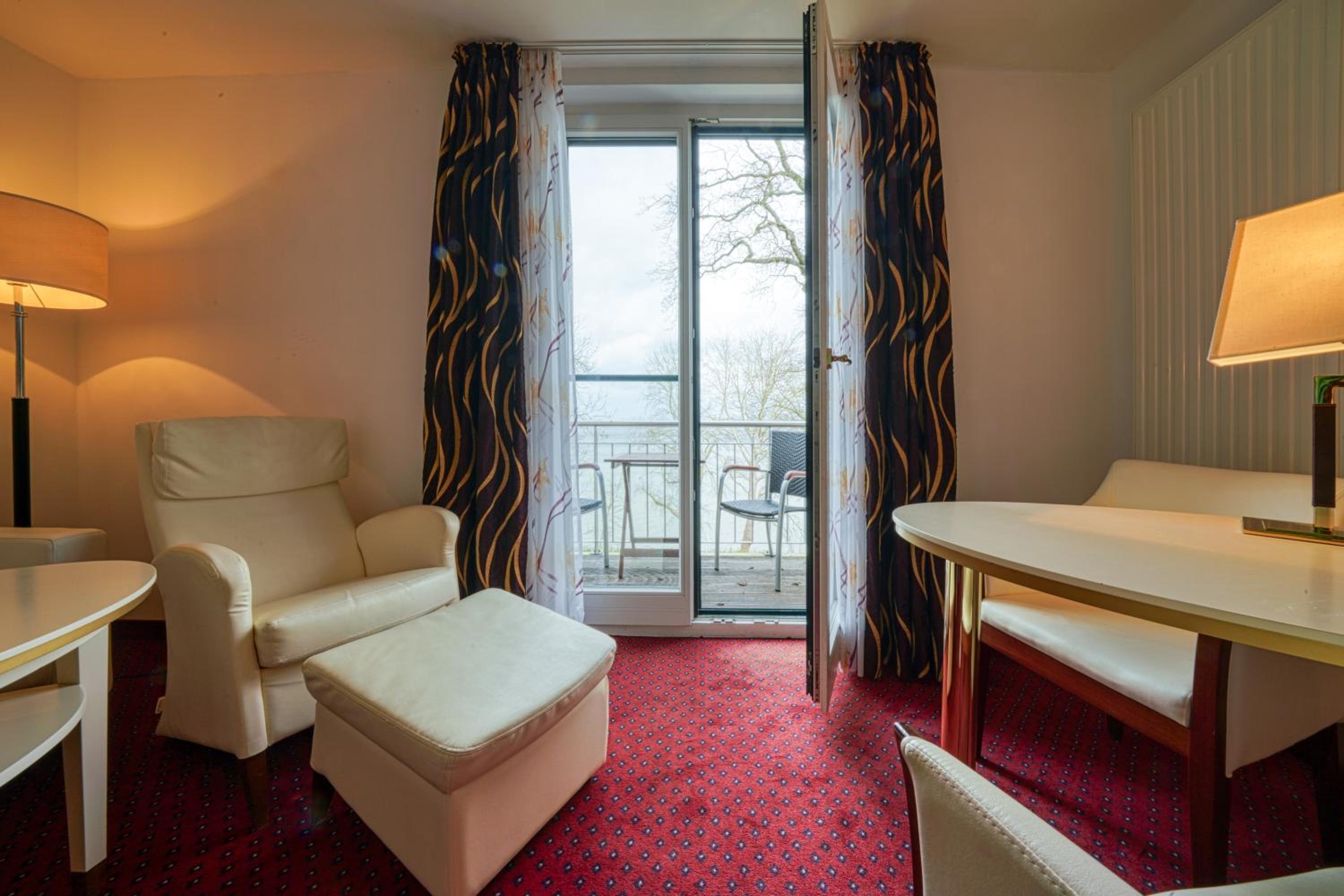 Nestled beside Wismar Bay, the Phoenix Hotel Seeblick offers a tranquil escape with stunning sea views. Unwind in the modern spa with sauna, massages, whirlpool, and a gym, perfect for a rejuvenating stay.