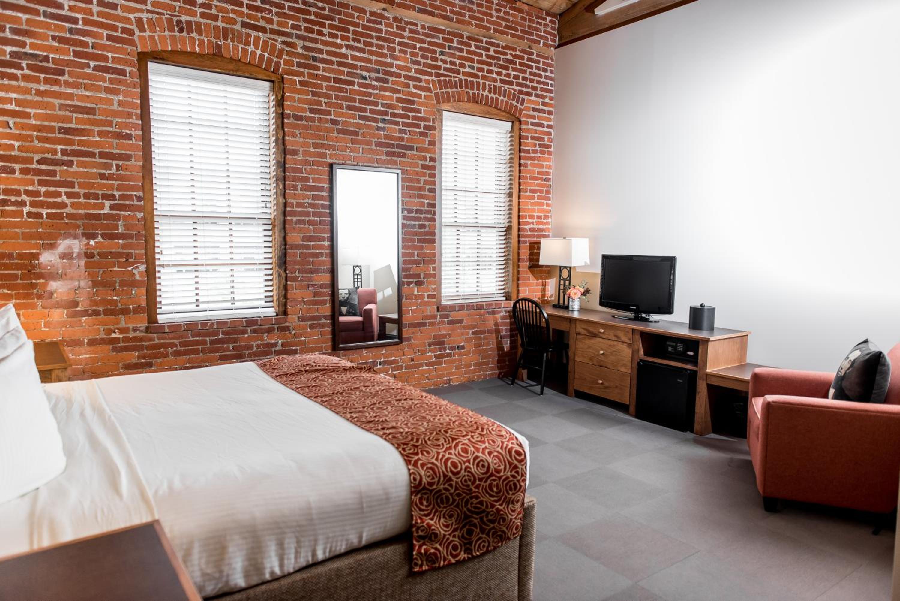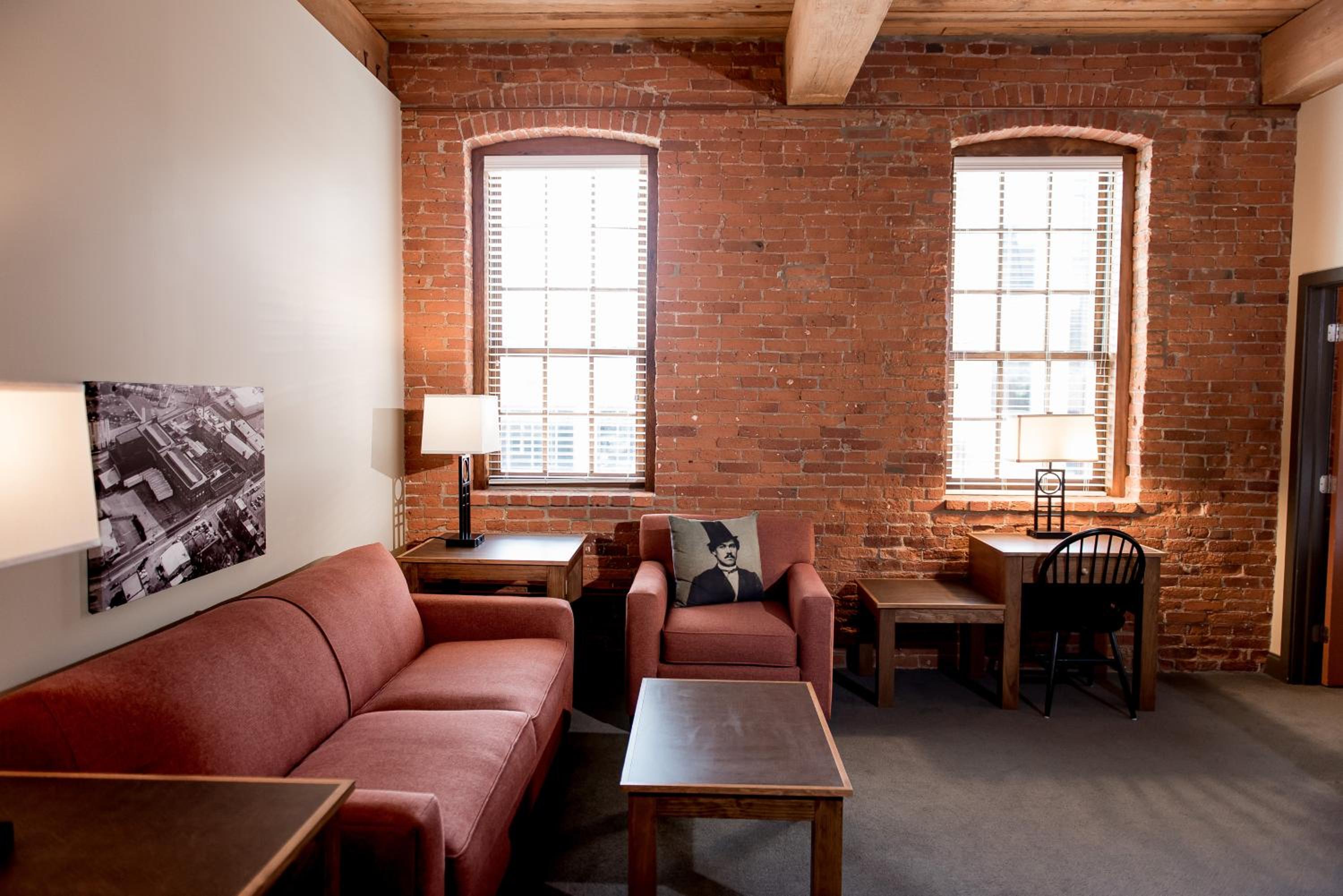 Step back in time at the Cork Factory Hotel in Lancaster. Experience the unique blend of historic architecture with modern amenities in our spacious rooms featuring exposed brick walls and granite bathrooms.