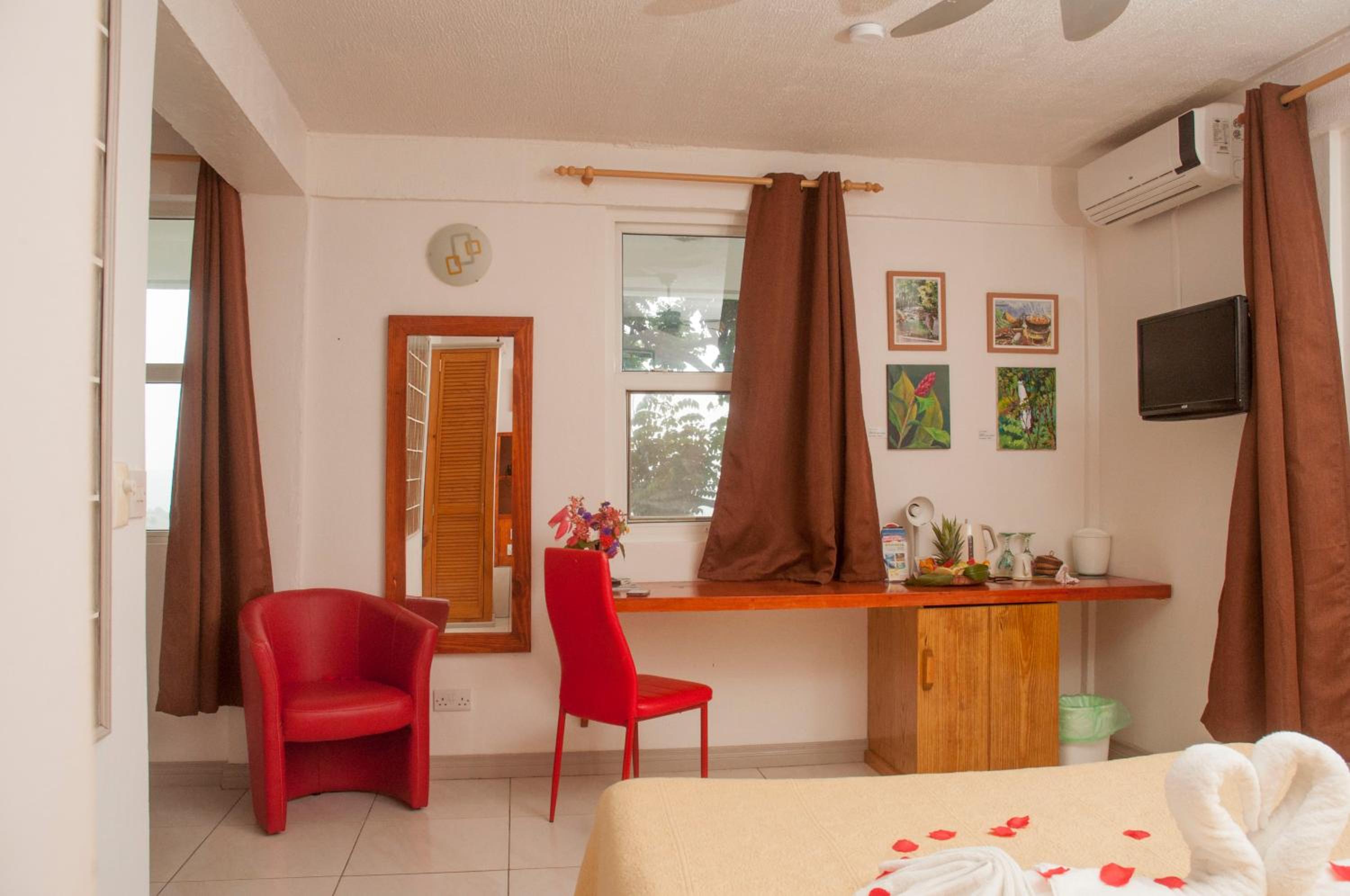 Petit hôtel avec belle vue sur la ville et la mer. Personnel très serviable. Lise la propriétaire néerlandaise parle très bien le français est très sympathique. Chambre spacieuse et agréable avec grande salle de bains. La climatisation fonctionne très bien et n'est pas bruyante. Un frigo avec avec un bidon d'eau rempli tous les jours. Petit coin terrasse avec table individuelle. Excellente ambiance détendue. Restaurant agréable avec cuisine faite au comptoir, copieux avec de bons produits sur la terrasse dominant la mer et à un prix raisonnable. Bon petit déjeuner. Petit parking mais suffisant. Piscine agréable (non testée).