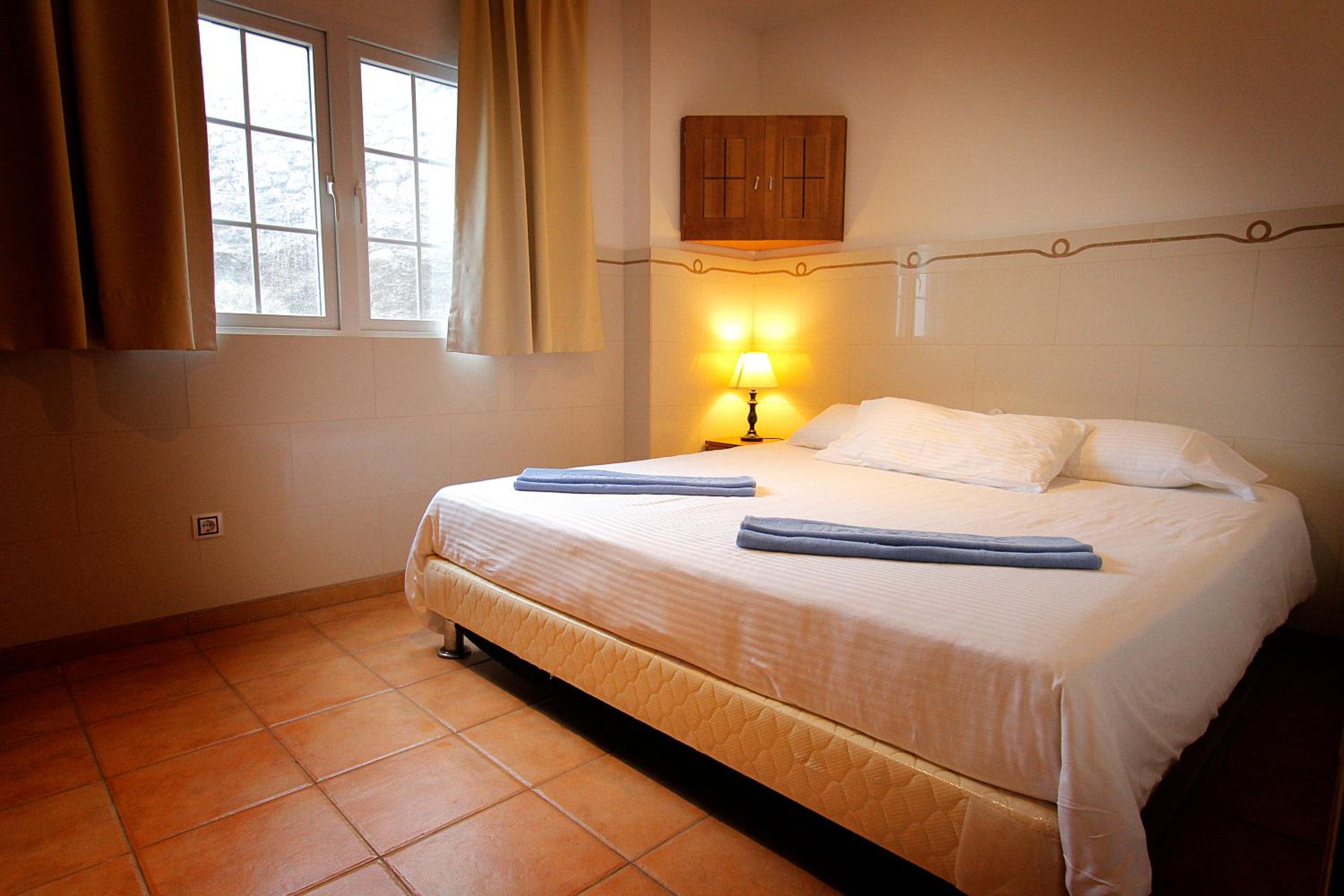 We arrived on a Sunday afternoon and we were very happy to find out that we had been given a room on the top floor. :-) The staff who checked us in were absolutely lovely and friendly, as were all the staff we encountered, from the whole reception team to the bar staff. When getting into the apartment we found it very comfortable with a large balcony with enough room for 4 chairs and a table. The view was absolutely perfect! There was a small kitchenette area, which was quite well equipped with saucepans and cooking utensils. The cleaners also do a fantastic job and there was not a speck of dirt or dust anywhere! There is a fairly good size supermarket just over the road which was very convenient. The TV was very good, with a lot of different channels in various languages which was a nice surprise. The pool area was lovely, as well as the bar area surrounding it.