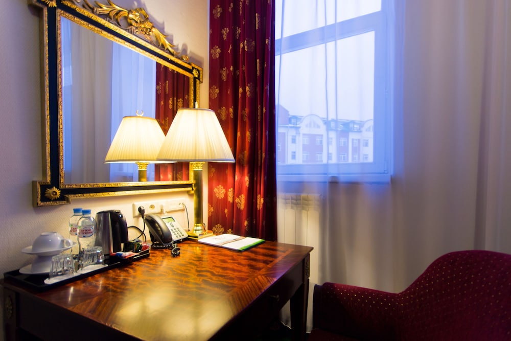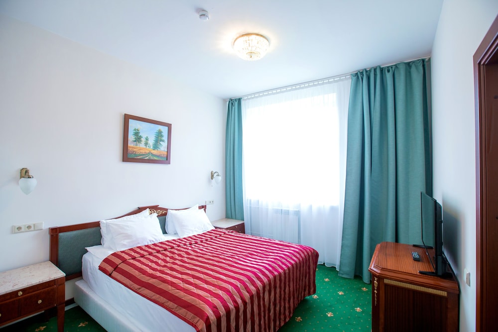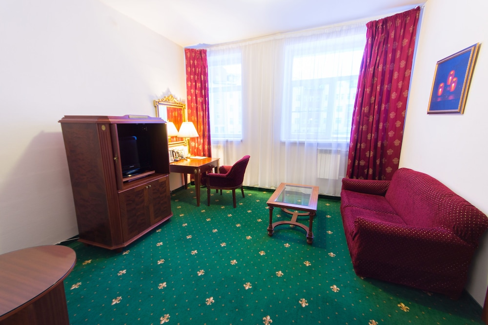 Hotel is a bit odd, you can see from the pictures, it has not been updated in a long time, the room light needs time to warm up. But anyway, it is very likeable, the rooms are big and warm. The location is fantastic, short walk to Footbal stadion, Sibur Arena and also a beautiful park. The metro is about a mile walk through the park but if you can't manage that a mini bus goes every half hour from hotel.