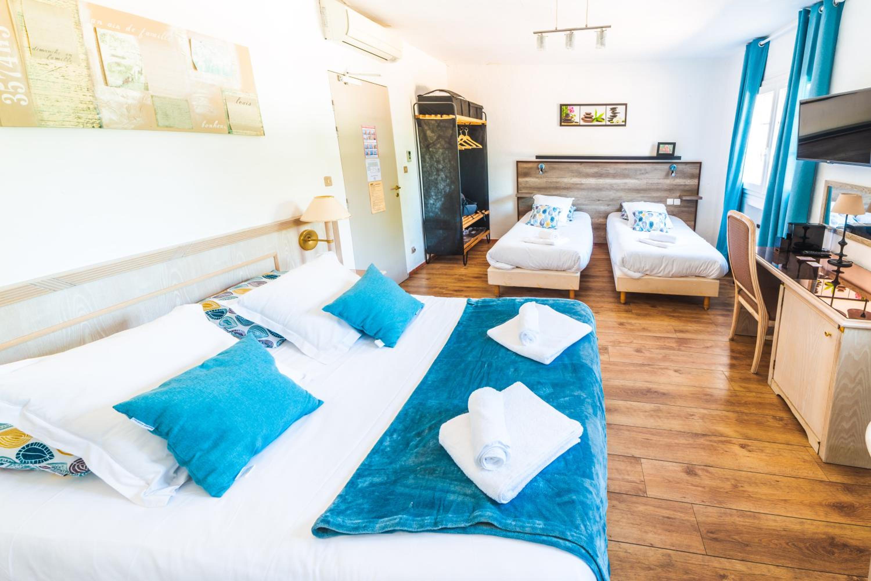 Un petit rafraîchissement des chambres et de la salle de bain serait nécessaire mais la chambre est propre et fonctionnelle.