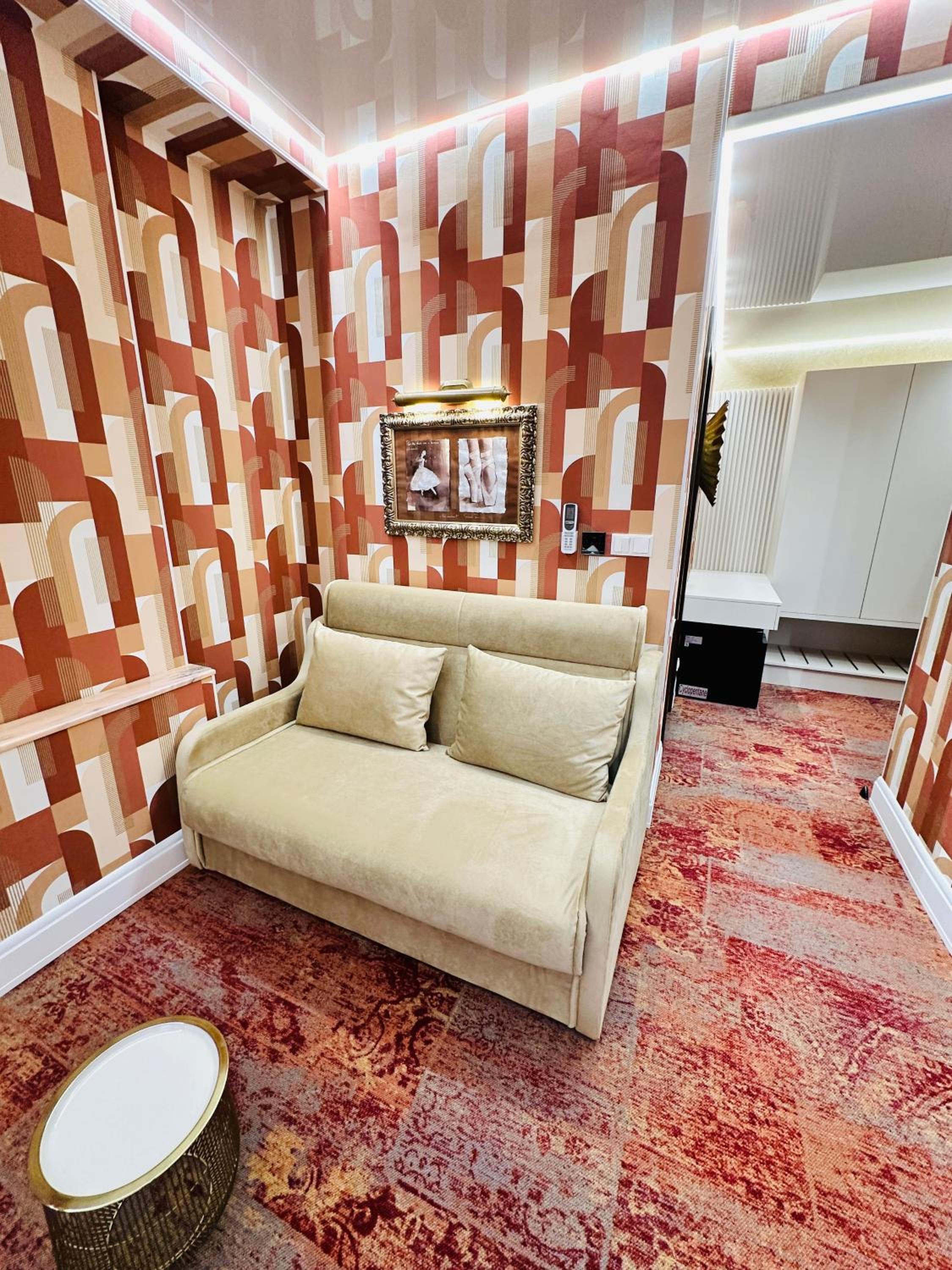 La stanza era molto carina, il minibar ben fornito. La proprietaria è stata gentile e ci ha offerto un caffè perché avevamo perso la colazione inclusa. La stanza e il bagno erano arredati con estro e un gusto particolare.