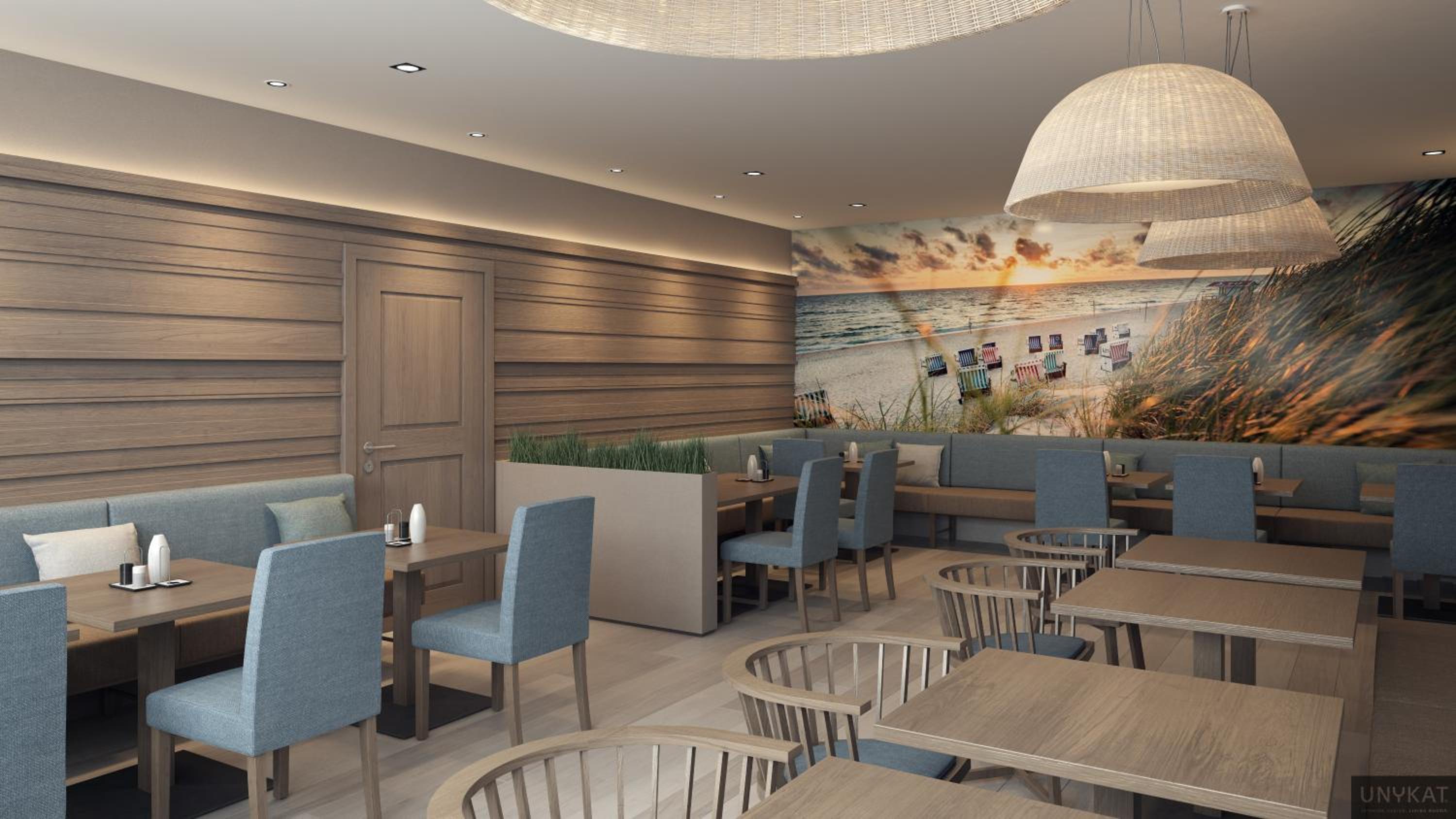 Relaxing Spa and Terrace: Unwind in the 220 m² spa area with a sauna, steam bath, and fitness room. Step outside to the terrace and lounge in wicker beach chairs, perfect for ultimate relaxation.