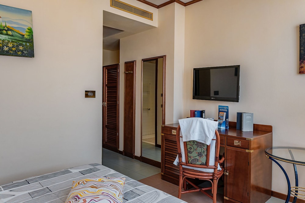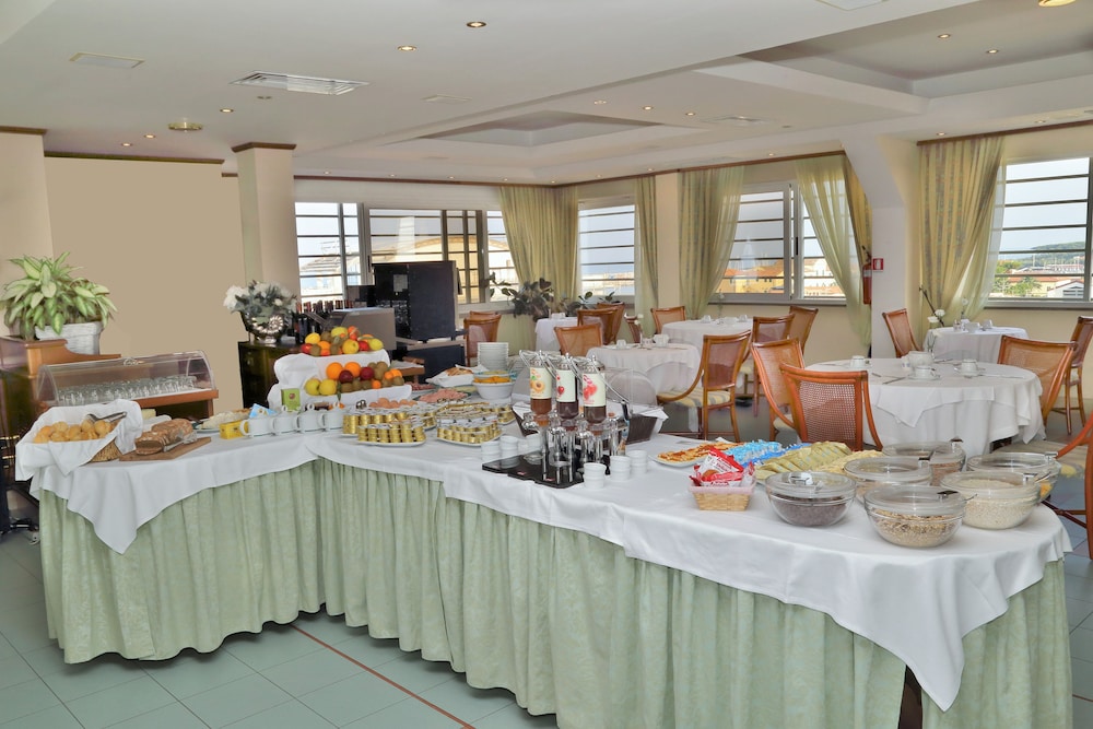 In linee generali nella media, ma abbiamo sofferto per lo scarso quasi nullo sistema di aria condizionata in camera a metà luglio con 35° fuori. Colazione continentale discreta, non male: brioches , biscotti e torte confezionate, frutta, affettati, uova, yogurt, cereali, succhi di frutta, caffè/cappuccino da macchinetta. Posizione dell'hotel eccellente, centralissima a pochi passi dal mare e pineta, vicino a tutti negozi e movida, raggiungibile anche a piedi il parco acquatico acqua Village, personale cordiale. Purtroppo non credo che torneremo perché abbiamo sofferto troppo il caldo in piena estate bruciati dal sole. Per il resto è una buona scelta.