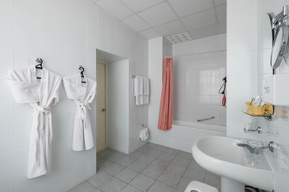 Camere piccoline con bagni basici (tenda della doccia attaccata con ventose) ma il tutto molto dignitoso per il prezzo pagato. Colazione al di sopra della media dell'hotel in bella sala