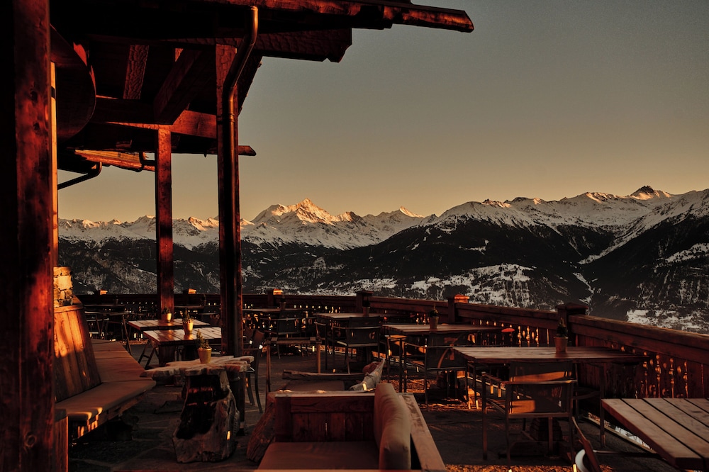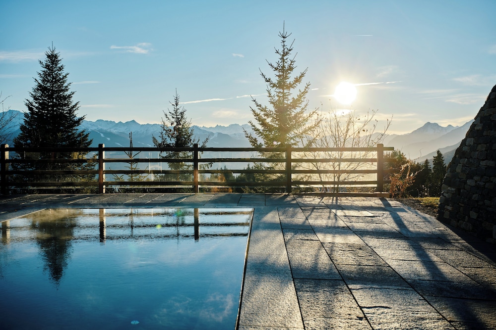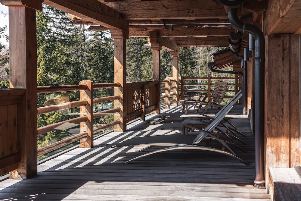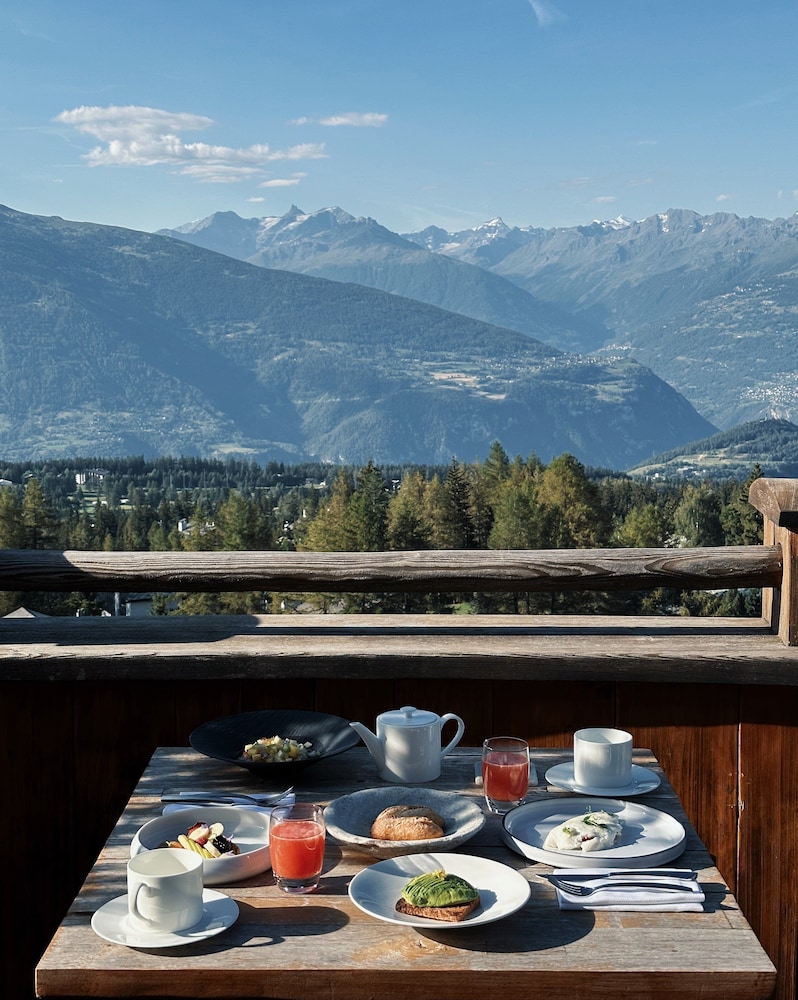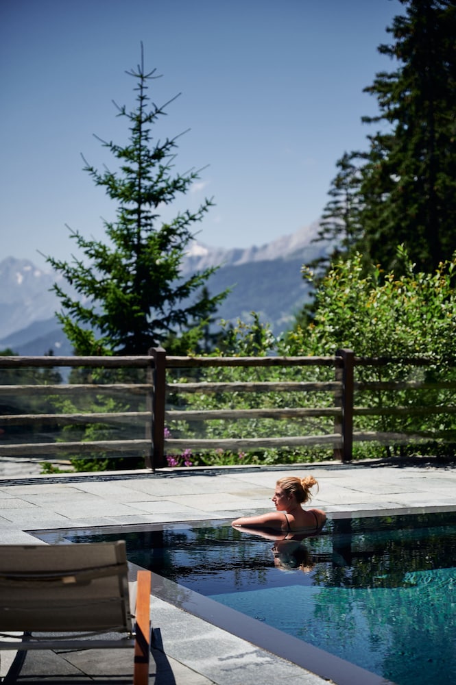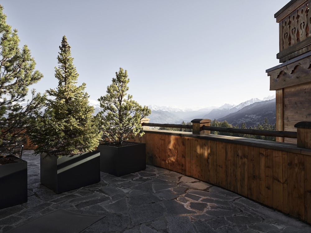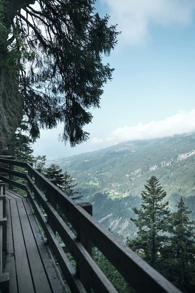 The location - on a sunny terrace with stunning views - remote and silent with the energies of the highest and most powerful mountains of the alps, especially the complete massif du Blanc. Only 15 suites, no big crowds. Individually designesd spacious rooms with natural high quality materials, same with the Spa- quality instead of quantity oriented. Perfect friendly and open-minded service. We had a real Gourmet experience in the restaurant - better reserve a table on weekends. We absolutely enjoyed staying in this relaxing generous beautiful athmosphere. This has its price - and it is worth it.