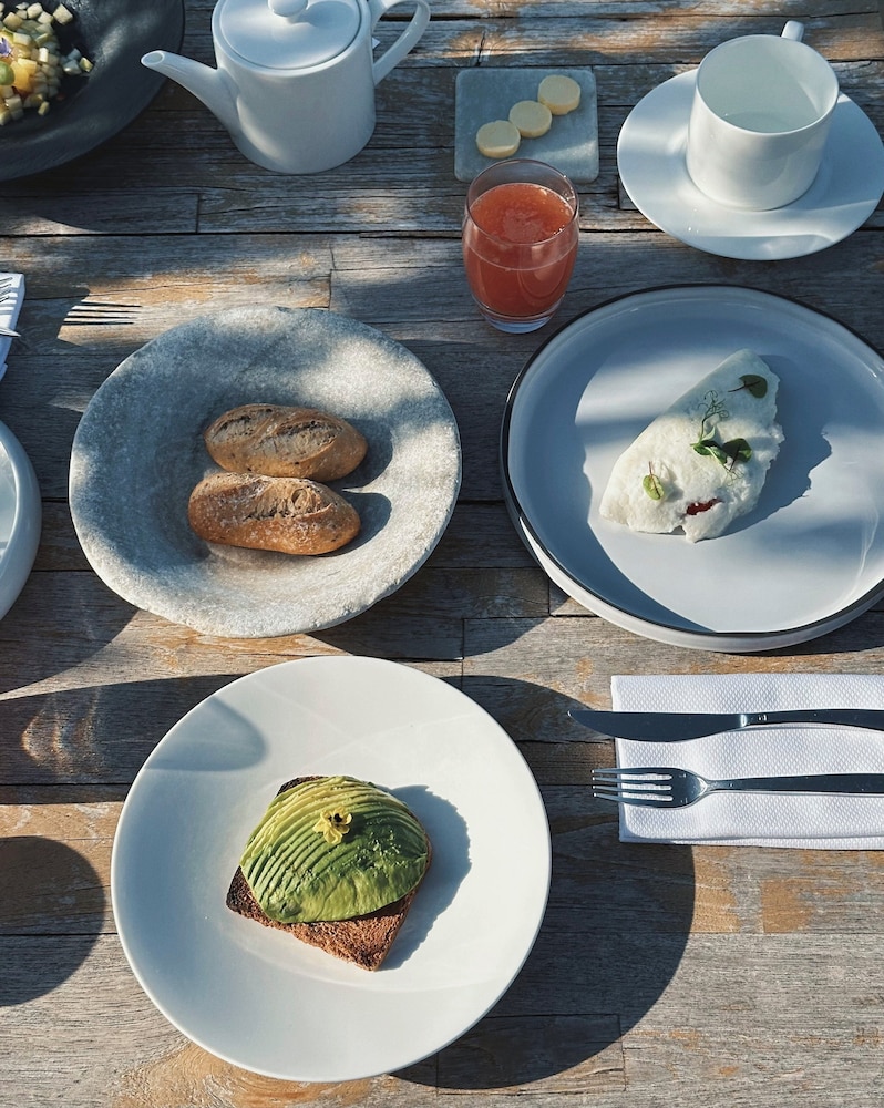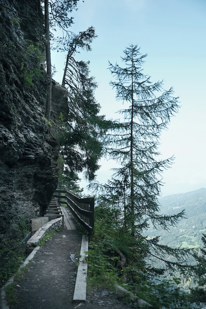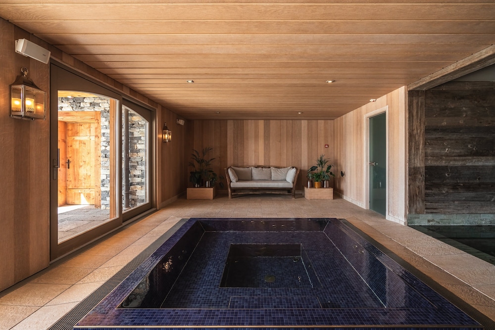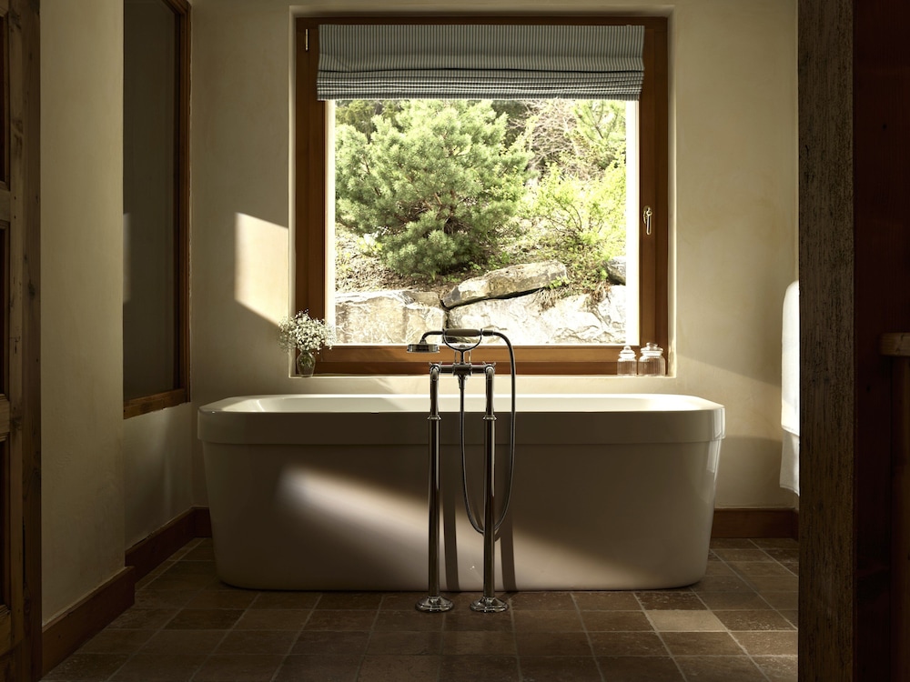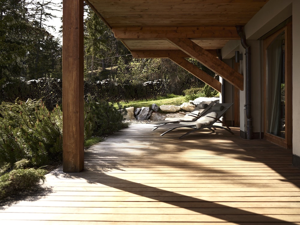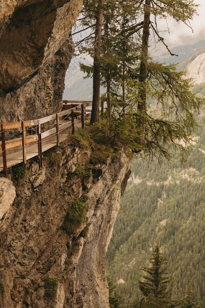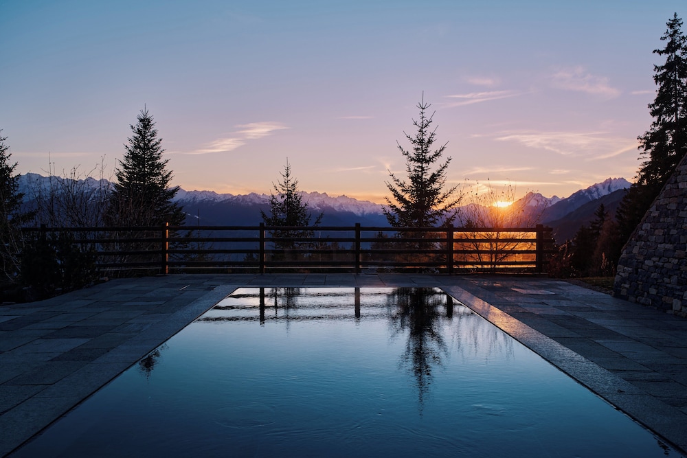 The location - on a sunny terrace with stunning views - remote and silent with the energies of the highest and most powerful mountains of the alps, especially the complete massif du Blanc. Only 15 suites, no big crowds. Individually designesd spacious rooms with natural high quality materials, same with the Spa- quality instead of quantity oriented. Perfect friendly and open-minded service. We had a real Gourmet experience in the restaurant - better reserve a table on weekends. We absolutely enjoyed staying in this relaxing generous beautiful athmosphere. This has its price - and it is worth it.