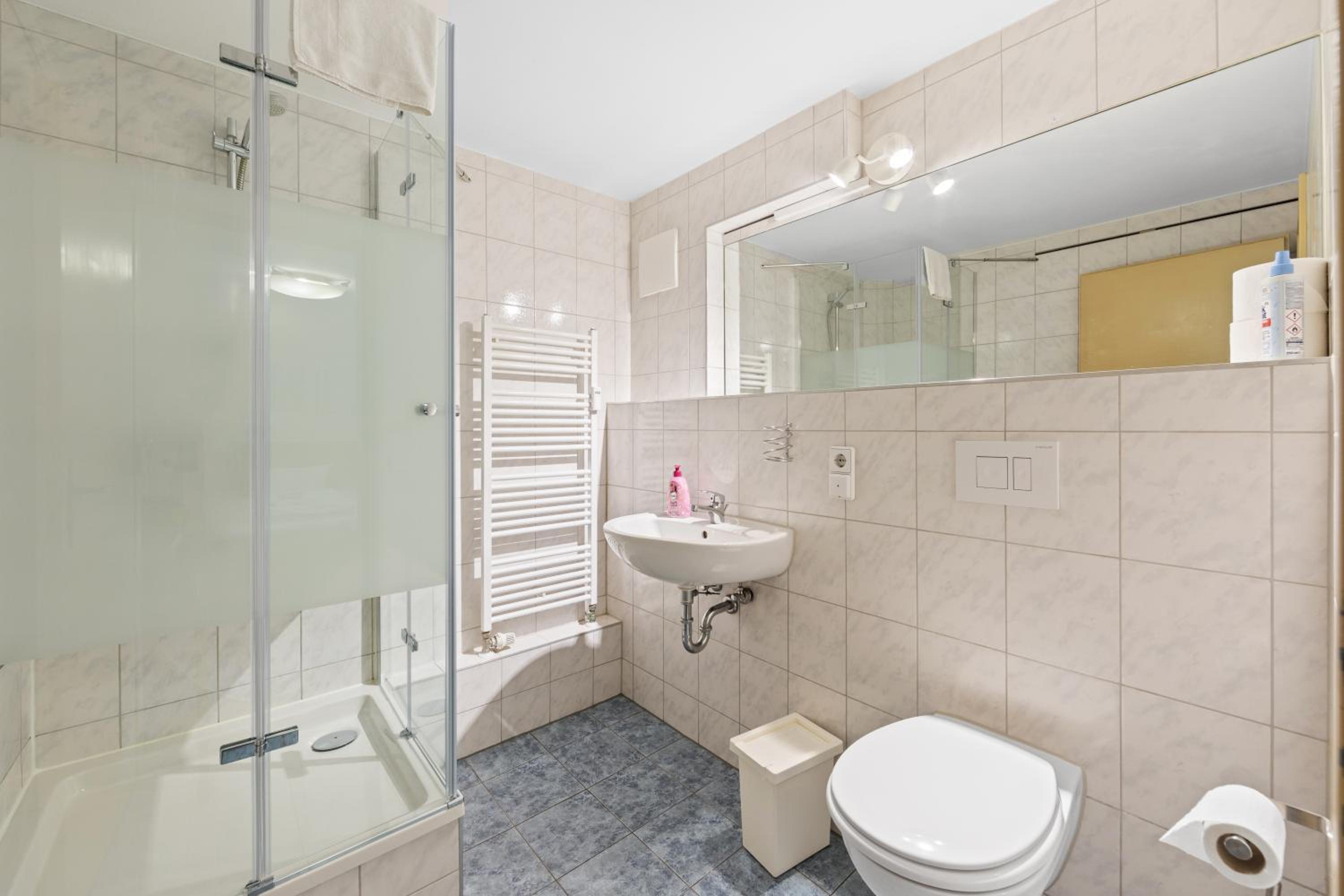 Das Bad war nicht zu 100% sauber (Kalkiger Duschkopf, vergilbte Klobrille)