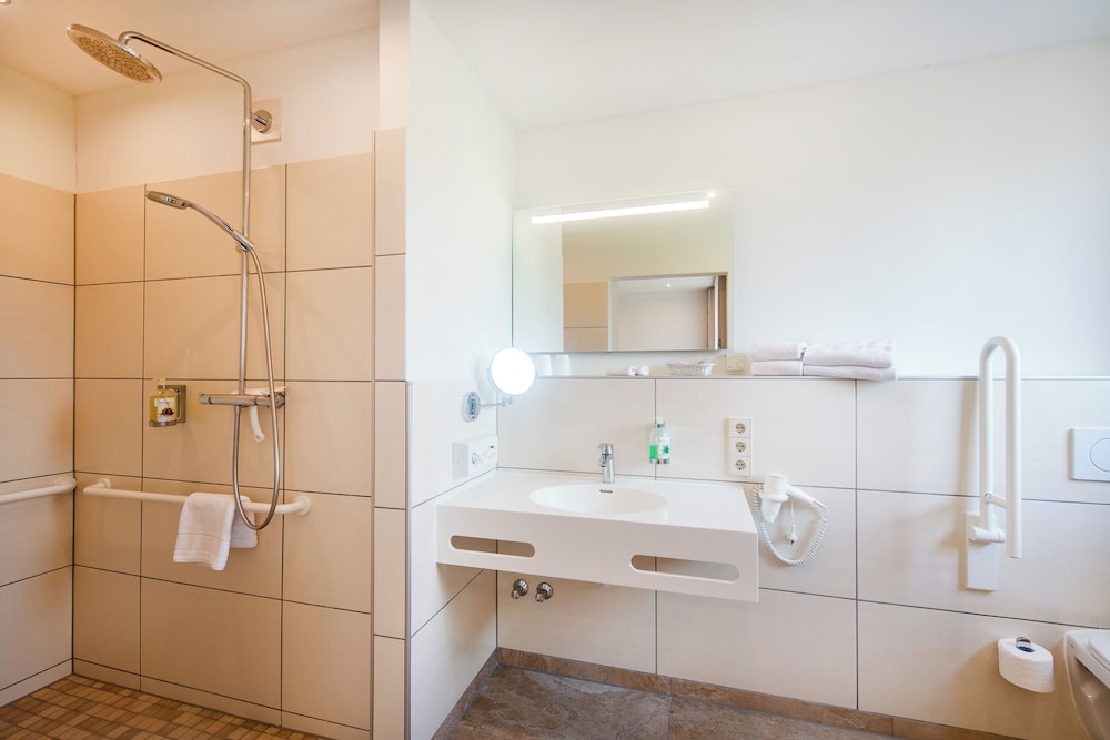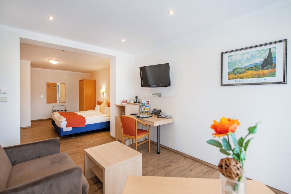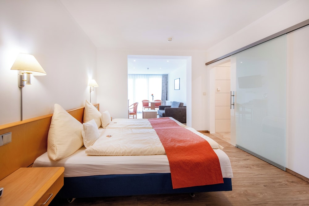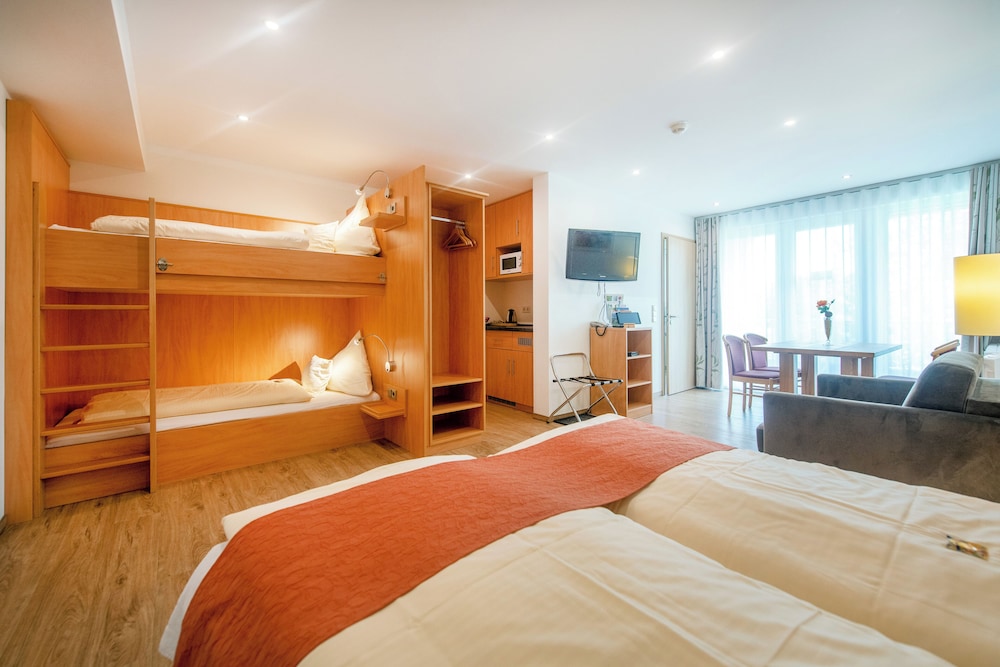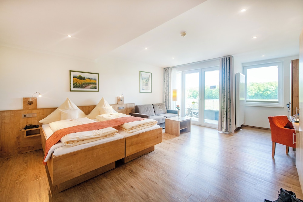 This hotel was so much more than I expected! It was not only beautifully decorated and spotless on the inside, but the gardens outside and the views were wonderful. It is a fabulous place to relax and unwind, take in the beautiful sights and smells of the German countryside and just enjoy your family. This is a must stay place!!! However, be aware that it is actually 34 km from